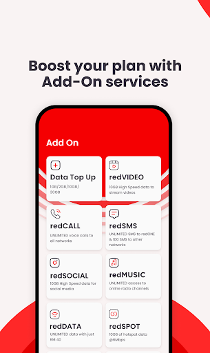 Maximise your redONE experience with the 1App today! Seamlessly manage and get an overview of your redONE Postpaid Malaysia account and have everything at your fingertips. Some Of The Advantages Of Using 1App: - Check Your Data & Call Usage - Subscribe To Add-Ons Like redDATA, redMUSIC, redSOCIAL, redVIDEO And More - Check Your Bill & Make Payment - Add Your Credit Or Debit Card To Enjoy Further Rebates - Redeem Rewards & Rebates - Refer Your Friends And Earn Bill Rebates - Chat With Our Friendly Support Team Or Find The Nearest redONE Store - Explore Additional Financial Perks: Virtual Credit Card or redCASH (Personal Financing) application. Apply for redCASH Personal Loan from RM1,000 up to RM10,000 – Experience a fully Digital Application Anytime, Anywhere and Fast Approval within 1 Day! Choose your desired loan tenures between 6 to 24 months at interest rate fixed at 1.5% per month or 18% per annum. Just minimal fees apply for all approved loans on processing fee of RM50 and stamp duty fee of the approved loan amount. The fixed interest rate of 1.5% per month or 18% per annum means that an applicant who borrows RM1000 for 12 months will be paying RM180 in interest where the monthly repayment will be RM98.33 for the repayment period of 12 months.The approved loan amount is depended on the debt-service-ratio (DSR) of an applicant and credit evaluation.