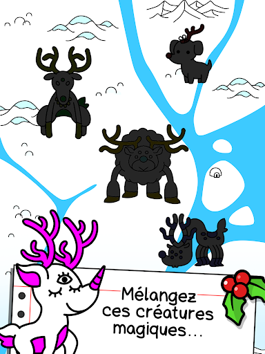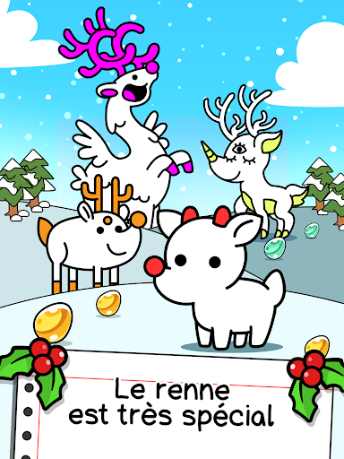 Vous voulez savoir comment obtenir des cadeaux de Noël illimités? Renne! Ces créatures magiques peuvent faire n\importe quel objet sembler instantanément aux objets de Noël. Exploitez cette compétence unique en combinant des rennes mutants et en créant de nouvelles races dont même le Père Noël lui-même n\a jamais entendu parler! Ensuite, il suffit d\utiliser leur pouvoir pour faire durer Noël toute l\année et obtenir tous les cadeaux que vous pourriez souhaiter! CARACTÉRISTIQUES DU RENNES Panthéon: un nouvel endroit pour les êtres suprêmes pour nous regarder mortels et rire de notre misère Impostors: méfiez-vous des “impostors” qui tentent de voler la vedette aux rennes. COMMENT JOUER Faites glisser et déposez des rennes similaires pour créer de nouvelles créatures mystérieuses Utilisez des œufs des rennes pour gagner des pièces, acheter de nouvelles créatures et gagner encore plus d\argent Alternativement, appuyez en enfoncant sur un éléphant pour gagner des pièces de monnaie à partir de leurs œufs POINTS FORTS Différentes étapes et de nombreuses races de rennes à découvrir Une histoire hallucinante avec des rebondissements sauvages! Le mélange inattendu d’un jeu de l\evolution et des jeux incrémentaux progressifs Illustrations de type gribouillage Jeu ouvert sans fin: savourez la liberté! Aucun renne n\a été blessé dans la réalisation de ce jeu, seuls les développeurs Une idée renniène, n’est-ce pas? Veuillez noter! Ce jeu se joue gratuitement mais contient certains articles pouvant être achetés avec de l\argent réel. Certaines fonctionnalités et suppléments mentionnés dans la description peuvent devoir être achetés avec de l\argent réel.