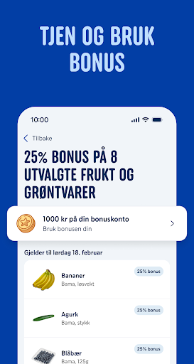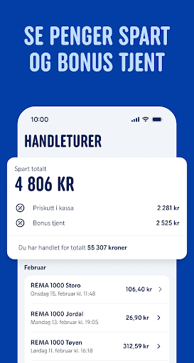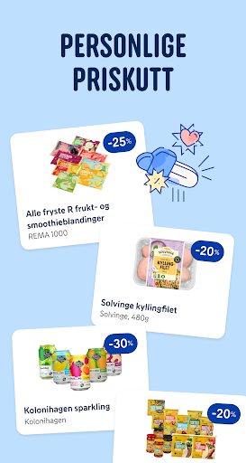 Med REMA-appen er det enklere å planlegge, handle, velge og spare. Du får: - 25% Bonus på åtte utvalgte frukt og grønnsaker hver uke - Alltid 10% Bonus på alle øvrige fersk frukt og grønnsaker - Nye Personlige Priskutt tilpasset deg hver uke - 50% priskutt på alle bleier ved å aktivere kuttet i appen med koden «bleier» - 50% priskutt på alle bind, tamponger og truseinnlegg ved å aktivere kuttet i appen med koden «bind» - Delbar handleliste: Søk opp varer, del med venner og familie og rediger i sanntid - Skann & Betal med mobilen. Er under utrulling, sjekk på rema.no hvilke butikker som har løsningen - Full oversikt over hva du handler og hvor mye du sparer med REMA-appen Legg til betalingsmåtene dine i appen for å tjene Bonus, få priskutt og registrere handleturer helt automatisk. Du kan også skanne strekkoden din i kassen før du betaler hvis du betaler med kontanter, klokke eller mobil.