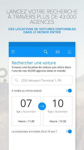 Besoin de réserver une voiture de location, et vite ? Consultez les offres de toutes les principales sociétés de location en un seul et même endroit. Utilisez notre carte et repérez l\agence de location la plus proche ou la moins chère puis faites une réservation en 4 étapes rapides et faciles. Vous vous rendez à l\autre bout du monde ou vous voyagez pour affaires ? Ça nous va aussi... Nous pouvons vous trouver la meilleure offre parmi celles de plus de 49 000 agences dans le monde avec notre application facile à utiliser. Plus de 7,5 millions personnes par an nous font confiance pour leur trouver les meilleures offres de location. Pourquoi ? • Nous garantissons les prix les plus bas. • Votre véhicule proviendra toujours d\un fournisseur de renom. • Vous pouvez contacter notre équipe réservation 7 jours par semaine. • Vous pouvez modifier ou annuler votre réservation en ligne rapidement et facilement. • 49 000 agences dans le monde • Disponible en 40 langues. • Voir le tarif dans plus de 91 devises. Rentalcars.com est l’une des plus grandes compagnies mondiales de réservation de locations de voitures en ligne, assurant plus de 7,5 millions de réservations par an dans plus de 49 000 agences partout dans le monde. Notre site, disponible dans plus de 40 langues et en multiples devises, est au service de notre fidèle clientèle s\étendant sur plus de 163 pays. Notre équipe de réservation multilingue est disponible 7 jours sur 7 pour vous assurer un service de haute qualité à tout moment. Rentalcars.com travaille en collaboration avec toutes les grandes sociétés de location de véhicules pour déterminer laquelle offre les meilleurs tarifs pour la voiture que vous voulez à la date dont vous en avez besoin.