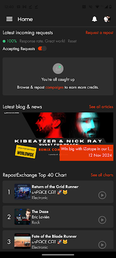 RepostExchange is the best way for up-and-coming artists to grow their fanbases for free. Trade reposts with other similar artists, organically build your following and engagement, get your music heard! Features: Get more plays on SoundCloud by teaming up with other musicians Promote your music, acquire more fans, gain the attention your music deserves Expose your music to the right audiences from EDM to Hip Hop Team up and collaborate with other artists, labels and channels Grow your fan base and popularity organically Easy, free self promotion and organic growth of your fan base Get more followers, plays, and engagements on SoundCloud Have other artists and musicians repost your music on their SC pages. When an artist reposts your track, all of their followers will be able to listen to your music and follow you as well. Promote your music for free No budget, no problem. Simply repost tracks from other artists to earn credits for free promo. Promote yourself to the right people whether you’re a up and coming DJ, producer or rapper. Expose your music to the right people Handpick which artists will repost your tracks or create campaigns to reach fans quickly. Search for artists with similar tastes to ensure your music is heard by the people who will appreciate it most. Boost your followers organically for free. Connect with other like-minded artists Find talented new artists looking to collaborate. Help each other promote or partner up in other ways. Get free clout. How to start building your fanbase for free: 1. Connect RepostExchange to your SoundCloud account in seconds 2. Use credits to request reposts of your tracks from other like-minded artists. Start with 30 credits for free 3. Repost other artists to earn credits. The more you share, the more you get shared. Why pay to be famous when you can get there for free? How do credits work? Reposts cost 1 credit for every 100 followers reached. A repost on a page with 1,000 followers will cost 10 credits. When reposting music on behalf of other artists, earn 1 credit for every 100 real followers your SC page has. You can also buy credits using in-app purchases. Download now to start growing your fanbase today. FAQs: https://repostexchange.com/faqs Getting Started Guide: https://repostexchange.com/blog/getting-started-with-repostexchange Please contact support@repostexchange.com with any questions or issues PLEASE NOTE: We are not associated with SoundCloud, but use their fantastic API to make the magic happen. We DO NOT sell followers, plays or likes and no results are guaranteed from use of the app. All members of RepostExchange are REAL and we use sophisticated algorithms to identify fake accounts and fake followers.