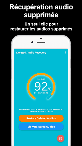Récupération audio supprimée - Restaurer les audios supprimés est un outil puissant de récupération audio pour rechercher et récupérer facilement les audios supprimés. L\application Restaurer les audios supprimés peut vous aider à récupérer les audios supprimés de votre stockage de téléphone ou de stockage externe. Vous pouvez prévisualiser les Audios supprimés avant de restaurer les Audios supprimés. En un seul clic, tous les audios supprimés que vous avez sélectionnés seront restaurés dans le dossier local. Vous pouvez utiliser Récupération audio supprimée pour partager ou ouvrir des audios supprimés avant de les restaurer. Note: L\application Restaurer les audios supprimés peut afficher certains audios même s\ils ne sont pas encore supprimés. Parce qu\il ya déjà une occurrence de ces audios dans les dossiers cachés numérisés par Récupération audio supprimée - Restaurer les audios supprimés. Il suffit de continuer à chercher et vous trouverez supprimé Audios que vous recherchez.