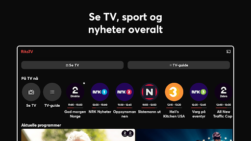 Se TV overalt i hele Norge – på mobil, nettbrett, Apple TV og Android TV. Med RiksTV-appen kan du se direkte-TV, ukesarkiv, sport, nyheter, film og serier der du er, både hjemme og i hele EU/EØS. Innholdet som er tilgjengelig avhenger av RiksTV-abonnementet ditt. RiksTV-appen er en strømmetjeneste inkludert i RiksTV-abonnementet ditt. Last ned appen kostnadsfritt og logg inn med samme brukernavn og passord som du bruker på rikstv.no/minside. Dette kan du gjøre i RiksTV-appen: - Se TV-kanalene og strømmetjenestene i abonnementet ditt. - Strøm filmer og serier fra HBO Max, TV 2 Play og SkyShowtime - Eget barneinnhold for de minste samlet på ett sted - Syv dagers TV-arkiv fra de fleste TV-kanalene - Få tilgang til «Min liste» med innhold du har lagret Smarte funksjoner: - Pause og spole i programmer - Spol to timer tilbake i TV-programmer som har begynt - «Fortsett å se»-funksjon for filmer og serier - TV-guide for hele uken - Søk i innhold på tvers av filmer, serier og TV-arkiv - Støtte for Chromecast