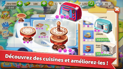 \Plongez au cœur du quotidien frénétique d\un maître cuisinier et goûtez à l\ambiance survoltée d\un resto en pleine effervescence ! Préparez in extremis des plats succulents et des boissons savoureuses, puis servez des clients tous azimuts, de village en village, de ville en ville, et de boulangerie en café. Au menu : des hamburgers et des pizzas dans une cuisine foldingue, des gâteaux et des desserts à la pâtisserie, des caouas en tout genre au café-restaurant et du fast-food aux quatre coins du monde dans Rising Super Chef - Crazy Restaurant Cooking Games : un jeu de cuisine et de gestion de temps complètement azimuté avec plus de 5 000 niveaux. C\est sans conteste le nouveau titre de cuisine gratuit incontournable de 2023 ! Saurez-vous gérer la folie et l\engouement culinaire dans Rising Super Chef - Crazy Restaurant Cooking Games ? Après avoir appris de nombreuses compétences à l\école de cuisine, Emma se lance dans sa propre aventure pour écrire une nouvelle page de son histoire gastronomique. Mais elle n\y arrivera pas sans l\aide d\une personne comme la star des cuisines : le grand maître cuisinier Ramsey. Que diriez-vous de préparer du fast-food dans un camion-restaurant qui sillonne le monde, de servir des hamburgers sur une carte dédiée au café-restaurant, d\accomplir les tâches quotidiennes du journal de cuisine, de vous démener pour utiliser tous les équipements de cuisine et de servir des clients impatients avant que la nourriture ne devienne immangeable ? Alors ce jeu est fait pour vous ! Caractéristiques du jeu : * Plus de 36 cartes. * Plus de 700 plats basés sur des recettes réelles à préparer avec 200 ingrédients. * Plus de 1 000 niveaux fun. * Des centaines d\améliorations pour les cuisines et les tenues. * Jeu de cuisine hors ligne. Vous pouvez jouer hors ligne sans Wi-Fi à tout moment et n\importe où ! Des recettes de restaurant savoureuses : - Petit-déjeuner et café-restaurant : king burger, hamburger, café, toast, bacon, omelette, salade de fruits, pancakes, saucisses, œufs brouillés, muffins, pain... - Cuisine britannique : rosbif anglais, cottage pie, scones, poisson frit, frites britanniques, Yorkshire pudding, Cornish pasties, bruschetta - Gâteau et pâtisserie : brownies, cupcakes, gâteau au fromage, gâteau au chocolat, gâteau aux canneberges, gâteau aux myrtilles, milkshakes, tarte, muffins, bols de yaourt - Glaces : yaourt glacé à la banane, glace au chocolat, gaufres, sorbets aux fruits - Saveurs italiennes : salade César, sauce tomate au bœuf, lasagnes au poisson, pâtes au poisson, crevettes grillées, poisson grillé, moules, pâtes aux crevettes, soupe aux fruits de mer - Cuisine mexicaine : salade et sauce à l\avocat, plat au boeuf et aux chips de maïs, salsa verte, salsa rouge, tacos, tortillas - Cuisine thaïlandaise : soupe tom yum, sashimi de crevettes à la thaïlandaise, sauce chili aigre thaïlandaise, curry de crabe thaïlandais, curry de calmar, curry de poulet, calmar grillé, pizza aux crevettes tom yum, poulet rôti à la citronnelle, riz gluant, riz frit Il existe également des dizaines d\autres cuisines thématiques à découvrir et à savourer, notamment les fruits de mer, la cuisine chinoise, la cuisine japonaise, la cuisine turque, le barbecue et bien plus encore. Il y a tellement de restaurants et de plats savoureux qu\on en a perdu le compte, alors pourquoi ne pas télécharger ce jeu gratuitement et l\essayer illico ? Likez-nous sur Facebook : https://www.facebook.com/risingstarchef Vous êtes accro aux jeux de cuisine/pâtisserie ou aux simulateurs de restaurant ? Vous aimeriez relever un défi où chaque seconde est cruciale ? Apprendre à cuisiner des hamburgers, des pizzas, des cafés, des gâteaux et toutes sortes de plats internationaux ? Éveiller le cordon-bleu qui sommeille en vous ? Alors ce jeu culinaire est fait pour vous. Téléchargez-le gratuitement sans plus tarder !\