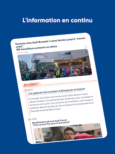 L’info régionale et nationale Belge ainsi que toute l\actualité mondiale en temps réel, où vous voulez, quand vous voulez et gratuitement. RTL info vous accompagne tout au long de la journée pour vous donner une information claire, sérieuse et décryptée de l’actualité belge et étrangère. Des faits d’actualité du jour en passant par la politique, l’économie, le sport ou encore les news people, ne manquez rien grâce à nos nombreux articles et vidéos. Suivez également en direct nos éditions télévisées de 13 et 19h. RTL info et ses journalistes s’engagent à aborder pour vous tous les sujets avec pertinence, crédibilité et empathie. Vous y retrouverez : - Toutes les dernières actualités Belges - Les derniers résultats sportifs - Toute l\actualité People - Toutes les émissions et journaux TV en vidéo - Le programme TV En téléchargeant l’application, nous vous invitons à créer un compte personnel et à y choisir les thématiques qui vous intéressent le plus. L’application vous proposera automatiquement des articles et des vidéos en phase avec vos centres d’intérêts. Vous aurez également la possibilité de créer votre propre Une personnalisée. L’info qui vous concerne, en temps réel et gratuitement, c’est sur RTL info.