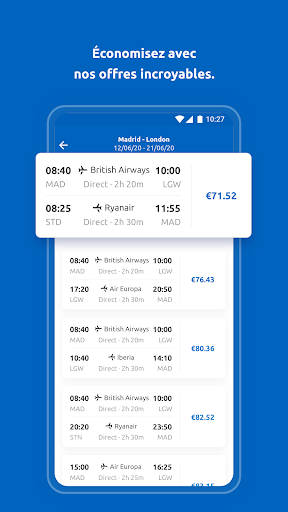 Chez Rumbo, nous avons pour objectif de vous offrir les meilleures offres de vols, hôtels, vol + hôtel et autres services. Découvrez notre app gratuite, vous permettant non seulement de mettre la main sur nos meilleures offres, mais aussi de garder toutes les informations concernant vos voyages à portée de main. Grâce à ses nouvelles fonctionnalités, réserver vos vacances ou escapades n\a jamais été aussi simple. *Connectez-vous et réservez encore plus rapidement Une fois vos données enregistrées dans votre espace personnel, réservez votre vol ou hôtel encore plus facilement. Connectez-vous et accédez à toutes les informations sur vos réservations, notifications en temps réel, cartes d’embarquement et offres exclusives sélectionnées spécialement pour vous. *Votre voyage en un coup d’oeil Contrôlez les détails de votre prochain voyage depuis la page d’accueil de l’app. *Accès facile et simple à toutes les informations sur votre voyage Vous avez oublié l’heure de votre vol ? Ou l’hôtel que vous avez réservé ? Plus besoin d\imprimer tous les détails : vous pouvez désormais accéder à toutes vos réservations depuis un même endroit. *Complétez vos recherches Sauvegardez vos recherches pour ne rater aucune offre. Finalisez cette réservation en cours et réalisez enfin votre voyage de rêve. *Vos cartes d’embarquement à portée de main Grâce à notre app, n\ayez plus peur de ne plus retrouver vos cartes d’embarquement : elles seront toujours à portée de main.