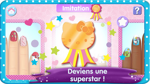 Budge Studios présente le Salon de manucure Hello Kitty ! Aide Hello Kitty à créer de super jolies manucures et gravis les échelons jusqu\au rang de styliste ongulaire superstar. Mets tes talents à l\épreuve grâce aux défis ou développe ta créativité dans le Mode libre ! CARACTÉRISTIQUES • Choisis parmi toute une variété de formes d\ongle, couleurs de vernis, motifs et arrière-plans • Ajoute de jolis autocollants, des gemmes et des personnages Sanrio tels que Hello Kitty, Badtz-Maru, Chococat, Keroppi, Little Twin Stars, My Melody et Tuxedo Sam • Applique des manucures sur une photo de ta main ou de celle d\une amie • Crée des manucures uniques dans le Mode libre • Mets tes talents à l\épreuve en copiant une manucure dans le mode Imitation • Obtiens de jolies étoiles et gagne des niveaux de styliste ongulaire • Enregistre et partage tes créations dans l\album • Compatible avec les tablettes électroniques PROTECTION DE LA VIE PRIVÉE ET PUBLICITÉ Budge Studios prend la confidentialité des enfants très au sérieux et garantit que son application est conforme aux lois sur la protection de la vie privée. Cette application a reçu le « ESRB (Entertainment Software Rating Board) Privacy Certified Kids’ Privacy Seal », c\est-à-dire qu\elle est reconnue pour son sceau de protection de la vie privée des enfants. Pour plus d\informations, merci de consulter notre politique de confidentialité sur : https://budgestudios.com/fr/legal/politique-de-confidentialite/ ou de communiquer avec notre agent responsable de la protection de la vie privée à l\adresse suivante : privacy@budgestudios.ca Avant de télécharger notre application, veuillez noter que vous pouvez l\essayer gratuitement, mais que certaines options sont uniquement offertes sous forme d\achats intégrés. Les achats intégrés coûtent de l\argent réel qui est prélevé sur votre compte. Pour désactiver ou ajuster la possibilité d\effectuer des achats intégrés, modifiez les paramètres de votre appareil. Cette application peut contenir des publicités contextuelles (comme la possibilité de regarder des publicités pour obtenir des récompenses) pour d\autres applications publiées par Budge Studios et développées par nos partenaires ou des entreprises tierces. Cette application peut également contenir des liens vers les réseaux sociaux qui ne sont accessibles que si le contrôle parental les autorise. Veuillez noter que cette application permet aux utilisateurs de prendre et/ou de créer des photos pouvant être sauvegardées localement sur leur appareil. Ces photos ne seront jamais partagées avec d\autres utilisateurs de l\application, ni avec Budge Studios ou toute autre entreprise tierce non affiliée. CONDITIONS D\UTILISATION/CONDITIONS GÉNÉRALES D\UTILISATION Vous trouverez les conditions générales d\utilisation de cette application sur le lien suivant: https://budgestudios.com/fr/legal/license-dutilisateur/ À PROPOS DE BUDGE STUDIOS Budge Studios a été fondée en 2010 afin de divertir et d\instruire les enfants du monde entier grâce à l\innovation, à la créativité et au divertissement. Devenu un chef de file mondial en matière d\applications pour enfants sur téléphones intelligents et tablettes, Budge Studios applique les normes de sécurité et d\adaptation du contenu à l\âge les plus strictes. DES QUESTIONS ? Les questions, suggestions et commentaires sont toujours les bienvenus. Tu peux nous contacter 24h/24 et 7j/7 à l\adresse suivante : support@budgestudios.ca. SANRIO, HELLO KITTY and associated logos are trademarks and/or registered trademarks of Sanrio Co., Ltd. used under license by Budge Studios Inc. Hello Kitty Nail Salon application 2015-2017 Budge Studios Inc. All artwork in application 1976, 1979, 1988, 1993, 1996, 2015-2017 SANRIO CO., LTD. All rights reserved. BUDGE et BUDGE STUDIOS sont des marques déposées de Budge Studios Inc.