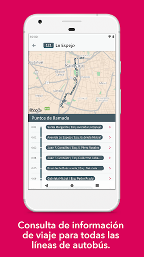 Transantiago Bus Checker le ofrece horarios de autobuses en vivo, planificación inteligente de viajes y mapas de ruta detallados para todo Santiago, Chile. Con datos oficiales de salidas de autobuses en tiempo real, esta aplicación lo tiene cubierto. Llega a donde necesites ir en Santiago. Características • Horarios en vivo en cada parada de autobús en Santiago • Planifica un viaje en bus a cualquier lugar de Santiago • Explore mapas de ruta para todas las rutas de autobús de Santiago: vea exactamente a dónde va su autobús • Esté un paso adelante con actualizaciones sobre desvíos, cierres y cancelaciones • Guarde sus paradas, rutas y lugares favoritos para un fácil acceso Presionar • Presentado en BBC Click, Telegraph Online, The Independent, Cosmopolitan y Wired UK • “Si viajas regularmente en autobús, entonces no deberías salir de casa sin el Bus Checker” - The Guardian _______________________________________________ ¿Problemas con la aplicación? Lea nuestras preguntas frecuentes en www.buschecker.com o toque el enlace desde la aplicación para acceder a nuestro portal de soporte _______________________________________________ notas - Bus Checker es una marca registrada de UrbanThings Limited - Datos proporcionados por feeds oficiales de Wireless-IQ y Transantiago