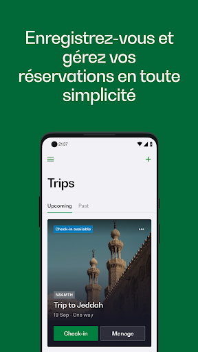 L\application mobile de Saudia offre aux voyageurs une expérience élégante et supérieure pour réserver, gérer les voyages, s\enregistrer et plus encore. Les membres d\ ALFURSAN ont accès à un tableau de bord contenant des informations clés sur leur compte, ce qui fait de l\application le compagnon de voyage par excellence. CARACTÉRISTIQUES RÉSERVER DES VOLS ET AJOUTER DES OPTIONS - Réservez vos vols rapidement et en toute transparence. Toutes vos informations de passager sont stockées sur votre téléphone. - Prenez des options comme les sièges avec plus d\espace pour les jambes, le WiFi, la file prioritaire et des bagages supplémentaires. - Payez avec Visa, Master Card, American Express, MADA ou SADAD. ENREGISTREMENT - Enregistrez-vous en ligne et récupérez votre carte d\embarquement. Vous avez la possibilité de visualiser la carte d\embarquement numérique directement dans l\application ou de la recevoir par SMS ou par courrier électronique en tant que copie numérique. Enregistrez tous les passagers où que vous soyez, jusqu\à 60 minutes avant l\heure de départ de votre vol. Les cartes d\embarquement sont stockées sur votre téléphone et accessibles hors ligne. - Améliorez votre voyage en toute simplicité : vous pouvez désormais réserver un hôtel, louer une voiture et bien plus encore, le tout en un seul endroit pratique ! Tableau de bord ALFURSAN - L\inscription rapide à ALFURSAN se fait après avoir complété les données des passagers lors de la réservation du vol. - Retrouvez et mettez à jour votre propre profil ALFURSAN. - Retrouvez vos miles et récompenses. - Retrouvez l\historique de vos vols. MES RÉSERVATIONS ET PLUS - Récupérez facilement les réservations que vous avez effectuées hors de l\application et stockez-les sur votre téléphone pour un accès hors ligne. - Du changement de siège à l\ajout de bagages, vous pouvez désormais tout gérer en un seul endroit ! - Rationalisez votre voyage grâce à un processus de réservation simplifié et achetez facilement des suppléments. - Faites une offre de surclassement de votre cabine via la gestion des réservations.