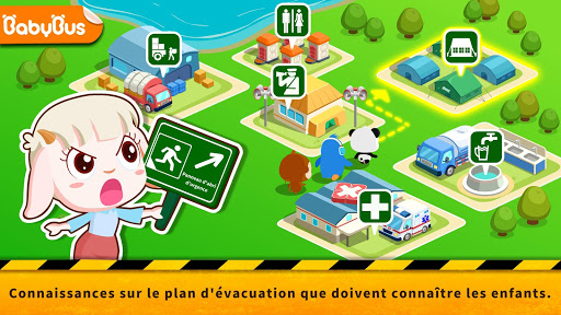 La maison a été détruite par un désastre naturel. Que devrais-je faire ? Parc, salle de gymnastique, place, hôpital.. Où peut-il être un refuge? Téléchargez [Conseils de sécurité contre le séisme 2] et vous apprendrez à évacuer scientifiquement ! Trouver des abris sûrs, construire diverses installations d\évacuation, purifier l\eau contaminée, etc. Si vous faites face à diverses situations inattendues, comme éteindre le feu dans un entrepôt, vous pouvez accumuler des connaissances sur l’évacuation d\urgence à travers les jeux ! Un jeu d\évacuation passionnant et pratique: 1. Branchez la pompe à air dans l\entrée de la tente et mettez l\air pour installer la tente ! 2. Dévissez le couvercle de la plaque d\égout et installez une toilette temporaire ! 3. La voiture d\approvisionnement en biens d\urgence est arrivée. Triez les articles par catégories! 4. C’est le temps de recevoir les articles ! Demandez de faire la queue et fournissez les articles selon les besoins. 5. Installez Scanner à rayons X et le défibrillateur puis rangez la trousse de secours. Etablissons notre centre de secours médical d\urgence ! 6. Ouvrez l\interrupteur de la machine et effectuez l\inspection de la qualité de l\eau ! 7. Mince ! la qualité de l\eau est inacceptable. Filtrez les impuretés et les germes dans l\eau. 8. Mince! L\entrepôt est en feu, bougez le tuyau pour éteindre le feu ! 9. Les amis et les familles se sont séparés. Allez au centre de contrôle d\urgence et demandez de l\aide ! Que faire après une catastrophe naturelle: 1. Regardez les panneaux et trouvez l\abri d\urgence le plus près de chez vous ! 2. Lorsque vous arrivez au refuge, enregistrez d\abord votre statut. 3. Rappelez-vous exactement à quoi ressemble votre famille et votre numéro de téléphone. 4. Ne prenez jamais d\aliments ou d\eau contaminés. Caractéristiques: 1. Vous pouvez apprendre les connaissances sur l’évacuation d’urgence à travers les jeux ! 2. Vous pouvez assurer la sécurité des enfants en apprenant les signes d\une évacuation d\urgence ! 3. Vous pouvez restaurer l\image originale détruite par le désastre ! 4. Facile à utiliser, le jeu est adapté aux enfants en bas âge ! À propos de BabyBus ————— Chez BabyBus, nous nous consacrons à stimuler la créativité, l\imagination et la curiosité des enfants, et nous nous efforçons de concevoir nos produits à travers les yeux des enfants afin de les aider à explorer le monde par eux-mêmes. BabyBus propose une grande variété de produits, vidéos et autres contenus éducatifs à plus de 400 millions de fans âgés de 0 à 8 ans à travers le monde ! Nous avons publié plus de 200 applications éducatives pour enfants, plus de 2 500 épisodes de comptines et des animations de différents thèmes couvrant la santé, la langue, la société, la science, l\art et d\autres domaines. ————— E-mail pour nous contacter : ser@babybus.com Visitez notre site Web : http://www.babybus.com