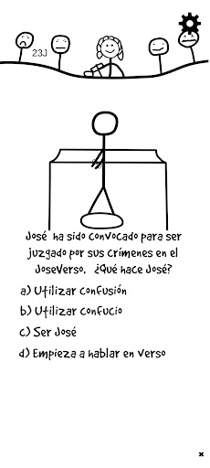 Con este divertido juego de Preguntas y Respuestas, manejarás a José y a todos sus amigos en las situaciones más extrañas que hayáis visto en vuestra vida. Después de haber muerto innumerables veces por fin quiere volver a salir de aventuras, solo o con toda la pandilla. Un juego repleto de niveles principales, secundarios y minijuegos con premios. El único consejo que os puedo dar para afrontar las decisiones más difíciles es una frase muy importante que dijo alguien una vez: Sé inteligente, sé como José.
