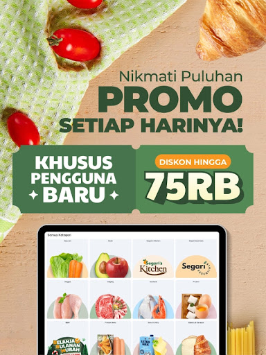 Ingin stok ulang kebutuhan kulkas atau rumah? Mau masak tapi ada bahan yang kurang atau habis? Sibuk tidak punya waktu untuk belanja keluar rumah? Segari, supermarket berbasis online siap membantu penuhi segala kebutuhanmu tanpa repot! Dapatkan keuntungan gratis ongkir untuk 3x pembelian pertamamu, dan beragam promosi setiap hari. Kenapa memilih Segari? 100% Garansi Kualitas - Segari berkomitmen dengan Proses kontrol kualitas 4x, untuk menyediakan produk berkualitas terbaik. Jika temukan produk yang kurang sesuai, maka Segari memberikan garansi uang kembali. Cukup foto - Whatsapp - ganti! 10.000+ Produk Harian - Dapatkan beragam sayur, buah, daging, sembako, produk kebersihan, kesehatan, kecantikan, dan beragam produk lainnya dalam 1 pembelian. Pengiriman 30 Menit Sampai - Segari menyediakan pelayanan pengiriman cepat 30 menit, dan pengaturan jadwal yang dapat disesuaikan dengan kebutuhan. Cara berbelanja: Unduh aplikasi Segari Pilih lokasi dan jam pengiriman Pilih produk yang diinginkan, dan tambahkan ke keranjang Masuk ke halaman Keranjang dan pilih metode pembayaran Selesai! Ordermu akan sampai sesuai dengan jam pengiriman pilihanmu Download aplikasi Segari sekarang, rasakan kemudahan dan kenyamanan berbelanja kebutuhan harian secara online!
