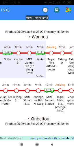 Features: *New: Serve as background service. Bus arrival status can be accessed via Android notification bar even if App is closed. 1. Next coming bus - Predict the most possible next coming bus base on your current location - Provide nearby bus stop locations in a map. Click on the map to select a specific stop. You can explore all bus routes via the stop 2. Nearby Stops - Provid all nearby bus stops sorted by the distance from current location - Click on a specific bus stop to display all bus routes via the stop - Click on a specific route to further display all stop sequence and their estimated arrival times - By clicking on a specific stop, you can further explore the stop nearby POI, such as food, restaurants, attractions and other store information. 3. Bus Routes / MRT (LRT) Information - Searching specific bus information by using route#, stop#, or partial stop name - Provide frequently used bus route for quickly selection. 4. Direction planning - Provide the suggeted traffic routes (walk, take bus, MRT, train, etc.) between the desired departure and destination location - Provide a well-planned route map to indicate the traffic types you need to use - Use speech recognition to speed up the route planning - Click on the destination to explore the destinatio nearby POI, such as food, restaurants, attractions and other store information - You can share the planned routes to a friend to his(her) LINE chat or EMAIL 5. Nearby POI Search - Provide nearby POI search - The POI categories include snacks, coffee snacks, restaurants, MRT station, Bike point, train station, attractions, hospitals, supermarkets, beauty salons, hotels, clothing stores, bars, shoe stores, Shopping malls, schools, flower shops, electrical shops, banks, travel agencies, bookstores, post offices, bicycle lines, steam locomotive, furniture, housing agents, pet shops, aquariums, etc. - Use voice input to query specific stores such as McDonald\s, Starbucks, ... - Provide detailed information of a store, such as photos, rating score, address, URL,openning hours, comments, etc. - Searching radius ranging from 500 meters to 7km can be set as your need - Provide POI maps and street views. It also indicates the best route from current location (walking or cycling) - Support search of cities or landmarks all over the world - You can share POI information to a friend to his(her) LINE chat or EMAIL