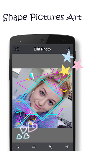 Shape Pictures Art lets you create best Photos with awesome shapes. Select a Photo from Photo Gallery or Take a new Photo with Camera and create any of the awesome looking shapes. Shape Photo Editor app you will get lots of shapes, option to add color to your shapes and in built photo editor to make your image even more appealing. Overlay Shape Camera is an amazing photo editor created to transform your photos into elegant designs with doodle shapes. It is very simple to use: you can turn your shots into artworks in just a few taps. Intuitive interface and clean design make the editing process incredible fun. Overlay Photo Editor App lets you set a photo in another photo with the creative frame. Easily making your photo more stunning than other photo frames! Shape Art App give an artistic look to all your images using Overlay for Pictures. Add custom typography, beautiful layout masks, elegant stickers and shapes. Circle, square, triangle, rhombus and other geometric shapes will help you to transform your photo and make it unique. Our Features: - 50+ creative shapes for Overlay photo app. - Create your own story with wide range of stickers. - Add your ideas with a tap and style them with different fonts and colors. - Rotation, Straighten, Crop, Resize. - Save your final result to your gallery, as wallpaper, or on your SD card.