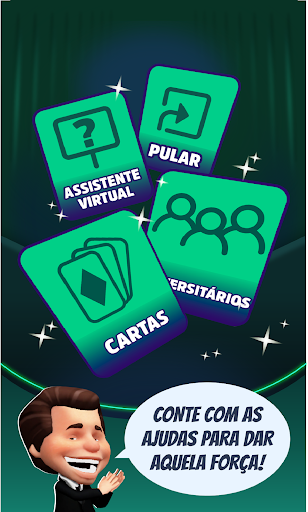 O game show de perguntas e respostas mais famoso do Brasil da TV para o seu celular: • Escolha entre a apresentação do Silvinho ou Celsinho. • Conte com o auxílio dos universitários, cartas e muito mais, igualzinho ao programa da TV. • Monitore seu progresso na área de Estatísticas, verificando a quantidade de acertos e erros, e muito mais. • Entre na disputa com outros jogadores e suba de liga a cada semana. Os prêmios conquistados no jogo são fictícios, de caráter ilustrativo e não podem ser trocados por valores reais em dinheiro. Termos de uso: www.sbt.com.br/termos-de-uso Política de privacidade: www.sbt.com.br/politica-de-privacidade