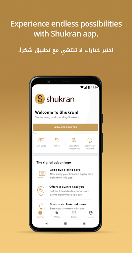 We\ve completely overhauled our app\s design with a fresh interface that’s far simpler, cleaner, more modern and relevant than ever before. SIMPLER • Navigate quickly and easily with our thumb-friendly tab bar menu • Enjoy offers, events and coupons closer to where you actually are • Easily calculate how many Shukrans you can earn or spend for your favorite brands both on and off sale MORE SECURE • Sign in swiftly and more securely with fingerprint • Enjoy greater digital card security with an anti-fraud shimmer FAR MORE USEFUL • Receive personalized coupons and offers right from your Home screen • Access your receipts and transactions • Use Inbox to instantly message your feedback to Shukran and receive great offers • Control your email, text and push communication preferences in a snap from My Account