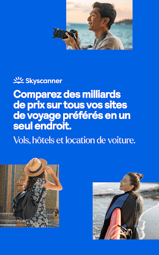 Planifiez votre prochain voyage avec Skyscanner en toute facilité. Où que vous vous trouviez, recherchez des vols, des hôtels et des offres de location de voiture dans le monde entier. Gagnez du temps et de l’argent en comparant et en réservant en un seul endroit auprès de vos prestataires de voyage préférés, tels que Air Canada, WestJet ou Air Transat. Pas de frais de réservation ou de frais cachés, juste les meilleurs prix. Voici comment utiliser notre application : Trouvez l’inspiration Vous ne savez pas où partir ? Parfait. Commencez par explorer toutes les destinations. Appuyez sur « Partout » dans notre barre de recherche pour trouver des vols pas chers littéralement partout dans le monde et trouver l’inspiration pour vos prochaines vacances. Filtrez votre recherche Vous avez une idée précise en tête ? Utilisez nos filtres intelligents pour faire vos recherches en fonction de la durée du vol, de la compagnie aérienne, du nombre d’escales, de la classe de billet et des heures de décollage et d’atterrissage. Le meilleur moment pour prendre l’avion Maintenant que vous avez choisi où aller, il vous faut trouver les meilleures dates pour réserver vos vacances. Notre affichage calendrier détaille les dates les moins chères d’un mois choisi pour vous permettre de trouver l’offre de vol qui vous convient. Vous ne voulez pas réserver tout de suite ? Créez une alerte de prix et nous vous informerons lorsque le prix du vol changera. Vous pourrez ainsi toujours réserver au bon moment. Le bon hôtel au bon prix Vous pensiez que nous nous contentions de trouver les vols les moins chers ? Nous vous aidons également à trouver l’hébergement de vos rêves. Comparez et réservez des offres intéressantes parmi des milliers d’hôtels, de résidences, d’appartements, de motels et d’auberges de jeunesse dans le monde entier. Vous êtes déjà sur place ? Cherchez un hébergement à proximité et profitez d’une offre de dernière minute pour vos prochaines vacances. Louez une voiture Indiquez le lieu, la date et l’heure de prise en charge souhaités pour découvrir les différentes offres disponibles. Vous pouvez filtrer les résultats de recherche par type de véhicule, carburant et options. Et grâce à notre Politique carburant juste, vous avez la certitude de bénéficier des conditions les plus équitables. Réservez chez des prestataires de confiance Comparez en un seul endroit tous vos prestataires de voyage préférés : Air Canada, WestJet, Air Transat, Flair Airlines, Lufthansa, FlightNetwork, FlightHub, Expedia, Trip.com, Booking.com et plus encore. Obtenez de plus des avis récents de notre communauté de voyageurs sur nos partenaires de voyage. Jamais de frais supplémentaires Saviez-vous que nous ne facturons pas de frais de réservation ? Jamais. Absolument aucun. Enregistrez vos vols Vous voulez regarder les vols, mais pas réserver tout de suite ? Aucun problème. Nous offrons une fonctionnalité « enregistré » qui vous permet d’insérer un symbole en forme de cœur sur les vols ou les hôtels que vous appréciez. Vos sélections apparaîtront sur votre écran d’accueil. Vous pourrez ainsi faire vos réservations quand bon vous semblera. Pourquoi Skyscanner ? • The Telegraph : « Les 20 seules applications dont vous aurez besoin » • The New York Times : « Applications pour les voyageurs qui rêvent de leur prochaine destination » • Elite Daily : « 7 applications de voyage de vacances qui vous permettront d’explorer le monde » Soyons sociaux • Facebook : https://www.facebook.com/skyscanner • Instagram : @skyscanner • X : @skyscanner • TikTok : @skyscanner • LinkedIn : https://www.linkedin.com/company/skyscanner/ • Site Web : www.skyscanner.net