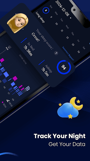 How did you sleep last night? Sleep Monitor helps you track and record sleep cycle details. Sleep Monitor also has a smart alarm clock to remind you to sleep early at night and wake you up gently in the morning. In addition, Sleep Monitor provides relaxing sleep music to help you sleep better. Key Features: - New Feature: Sleep Trends Improve sleep quality and develop better sleep habits with weekly and monthly data statistics. - Record Snoring or Dream Talking Sleep Monitor will record snoring and grinding sounds made during your sleep, listen to them, and find more about your sleep the next morning! For fun! - Mark Your Sleep Habits If you drink, eat, exercise, have any pathological condition or depressed emotions before sleep, see how these slumber habits can impact your sleep. - Track Your Sleep Phases Sleepers will have 4 or 5 sleep cycles during the night. Usually, sleepers will pass four sleep stages in one sleep cycle: Non-REM 1(between waking and sleep), Non-REM 2(light sleep), Non-REM 3(deep sleep), and REM (Rapid Eye Movement, when most dreaming happens) sleep. These stages progress cyclically from 1 through REM then begin again with stage 1. A complete sleep cycle takes an average of 90 to 110 minutes, with each stage lasting between 5 to 25 minutes. Sleep Monitor uses both microphone and accelerator sensors to measure body movements and environmental noise changes and then recognize your sleep stages. - Get Your Sleep Score Sleep Monitor will generate useful information for you after tracking, like sleep score, sleep cycle graphic, sleep statistics, sleep noise audios. Get your daily, weekly, or monthly sleep insights and use those data to help you sleep better. Sleep Monitor is especially helpful for those who want a way to check how their sleep is, and do not want to invest in an accessory like a smart band or smartwatch. - Set Smart Alarm Clock Set an alarm for your morning wake-up or nap or set a reminder for bedtime. - Listen to Soothing Lullabies Suffering from insomnia? Listen to high-quality relaxing music to calm a racing mind before sleep. Fall asleep quickly with different kinds of sleep sounds. - Write Sleep Notes Take brief notes for your sleep. Write down anything you want so you will never forget about them. Sleep Monitor Target Group - People who are suffering from insomnia, a sleep disorder that is characterized by difficulty falling and/or staying asleep. - People who want to do self-diagnosis whether there are signs of poor sleep quality. - People who care about sleep quality App Working Requirements √ Place your Android phone near your pillow or bed √ Sleep alone to eliminate interference √ Make sure the battery is enough Language Support English, Spanish, German, French, Portuguese, Dutch, Polish, Turkish, Finnish, Italian, Hungarian, Slovak, Greek, Bulgarian, Czech, Catalan, Danish, Romanian, Japanese, Korean, Arabic, Persian, Russian, Ukrainian, Breton, Lithuanian, Chinese, Indonesian, Vietnamese About Sleep Records Saving Sleep Monitor free version users can save the latest 7 sleep records on the phone; Sleep Monitor pro version users can save up to 30 latest sleep records in the app side and backup all history records on the server-side for later checking. Enjoy Sleep Monitor Pro √ Customize sleep factors √ Download audio recordings √ Save 30 and backup all sleep records √ Unlock all sleep music, sleep notes, sleep trends √ No ads ️FAQ http://sleep.emobistudio.com/faq/index.html Make sure your bedroom is quiet, dark, cool. Feel relaxed before sleep. Hope you sleep like a baby!