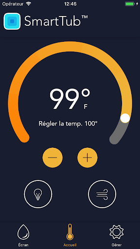 L’application SmartTub est un assistant personnel qui fera de vous un expert en matière de spa. Elle sera votre guide de référence rapide, votre application de conseils personnalisés ainsi que votre source d’informations et de vidéos pour l’utilisation de votre spa. Que vous soyez à l’autre bout de la ville ou dans le confort de votre demeure, vous pourrez avoir l’esprit tranquille, car vous serez toujours informé grâce au système SmartTub. o Profitez d’un réglage facile; vous n’avez qu’à jumeler votre application o Obtenez des connaissances et de l’aide approfondies sur les produits o Devenez un expert des soins à apporter à votre spa grâce aux conseils et aux vidéos personnalisés o Consultez les estimations de consommation d’énergie** o Ajustez les réglages d’importance, comme l’efficacité énergétique et la température, et ce, même si vous n’êtes pas sur place o Recevez des avis de panne de courant afin d’en réduire les conséquences o Recevez des alertes lorsque votre spa nécessite des réparations (votre détaillant sera également avisé) o Restez en contact avec votre détaillant grâce à un accès au moyen d’un clic Exigences *Système SmartTub installé sur les spas, compatible avec les modèles 2018 ou plus récents *Le système SmartTub a recours aux communications cellulaires et utilisera le service de téléphonie du fournisseur de service de votre région. *Exige un abonnement à partir de la deuxième année suivant l’achat. La première année est incluse dans le prix d’achat. **Les estimations sont basées sur les données des capteurs, et non sur celles de votre fournisseur d’utilitaire. Consultez votre fournisseur local pour plus de précisions concernant votre système.
