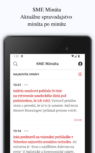 Najčítanejšie spravodajstvo na slovenskom internete v praktickej aplikácii. SME.sk pre Android vám ponúka rýchly prehľad o tom, čo sa deje na Slovensku a vo svete. Najdôležitejšie a najnovšie správy zo SME.sk číta viac ako dva a pol milióna ľudí na Slovensku. Vďaka aplikácii SME.sk vám nič dôležité neunikne. Budete v obraze vďaka rýchlemu notifikačnému servisu a prehľadnému obsahu správ. Aplikácia obsahuje články zo sekcií: Z domova, Zo zahraničia, Komentáre, Ekonomika, Kultúra, Šport, Auto, Tech a veda, Primár, Žena, Cestovanie, SME Plus, Fičí a aj anglické správy Slovak Spectator. V aplikácii nájdete aj multimediálny obsah SME.sk – videá a podcasty. Čo všetko v aplikácii nájdete: - Najdôležitejšie správy z titulky SME.sk - Najčítanejšie správy za 4 a 24 hodín, 3 a 7 dní - Rýchle notifikácie o aktuálnych udalostiach - Vyhľadávanie obsahu na SME.sk - Aktuálne spravodajské a publicistické videá TV SME - Najnovšie články blogerov zo služby Blog SME - Podcasty SME - Rozhovory SME - Správy z vášho regiónu (Bratislava, MY regióny, Korzár) - Diskusie k článkom - Lokalizovaná predpoveď počasia v menu - Ukladanie článkov na neskoršie čítanie