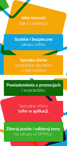 Bądź na bieżąco z najnowszymi trendami w świecie mody dziecięcej. Sprawdź jakie bestsellery królują w świecie zabawek i akcesoriów dla dzieci. Pobierz aplikację SMYK i odkryj nowy sposób na zakupy modnych ubrań, zabawek i akcesoriów dziecięcych. Poznaj najnowsze trendy, zarządzaj swoim kontem i znajduj sklepy w Twojej okolicy. Aplikacja SMYK pozwoli Ci cieszyć się szybkimi i bezpiecznymi zakupami Twoich ulubionych marek tj. COOL CLUB i SMIKI. Wśród ponad 300 000 produktów dla dzieci i niemowląt, znajdziesz również artykuły najpopularniejszych marek, takich jak: Fisher-Price, LEGO, Barbie czy Cool Club. Pobierz aplikację SMYK, aby robić zakupy na miarę Twoich potrzeb! KORZYSTAJ Z DARMOWEJ DOSTAWY Click & Collect - darmowa dostawa do sklepu. Zakupione produkty otrzymasz do wybranego przez Ciebie sklepu SMYK ODBIERAJ DODATKOWE RABATY SMYK Klub - znajdź się w elitarnym gronie i otrzymuj dodatkowe rabaty. Korzystaj z dodatkowych benefitów, promocji i oferty produktowej dostępnej tylko dla członków programu SMYK Klub MONITORUJ SWOJE ZAMÓWIENIE W aplikacji możesz na bieżąco monitorować status realizacji Twojego zamówienia. STWÓRZ SWOJĄ LISTĘ Sklep - możesz stworzyć własną listę ulubionych produktów i dzielić się nią z innymi. ZNAJDŹ NAJBLIŻSZY SKLEP SMYK Dzięki geolokalizacji, aplikacja podpowie Ci, gdzie znajdziesz najbliższe sklepy z asortymentem jakiego potrzebujesz. Otrzymasz też numer telefonu kontaktowego, na wypadek, gdybyś chciał zamówić konkretny przedmiot telefonicznie. SKONTAKTUJ SIĘ Z DORADCĄ Niezwykle łatwy kontakt z działem obsługi klienta. Wystarczy wcisnąć słuchawkę z poziomu aplikacji i dzięki temu połączysz się z osobą, która udzieli Ci odpowiedzi. ZAKUPY ONLINE JESZCZE NIGDY NIE BYŁY TAK ŁATWE I PRZYJEMNE Regulamin: http://www.smykgroup.com/wp-content/uploads/2018/03/Regulamin-aplikacji-mobilnej-Smyk.pdf