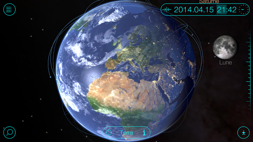 Allez-y pour trouver quelques choses en plus sur nos planètes voisines dans l’Univers, amusez-vous avec elles en déterminant la vitesse et le temps de circulation, en choisissant une planète particulière afin de devenir le centre de l’Univers, en regardant les lunes de Saturne, Jupiter, Mars et Uranus. Le modèle 3D de l’application Solar Walk est la reproduction exacte du système solaire réel. Solar Walk émerge parmi tous les autres applications astronomique avec sa graphique merveilleuse et fluide et ses animations. La Terre ainsi que les autres planètes apparaissaient tellement réelles que vous pouvez voir aussi les nuages ainsi que les reliefs des montagnes, les lacs et les océans. Bénéficiez énormément de l’emploi de Solar Walk pour un apprentissage interactif et pour vous rapprocher de plus en plus de l’univers! Les caractéristiques de Solar Walk: ★Vue de la GALAXIE - une vue absolument magique de toute l\option galaxie ★SATÉLLITES - courbes de mouvement en temps réel des satéllites de terre artificiels les plus intéressants ★LIEUX - les flèches te montrent ta position actuelle sur le globe et les noms des villes les plus grandes sur terre ainsi que des vues de la lune, du Mars et de la Vénus. ★FILMS - collection de vidéos éducatives animées ★LE SYSTÈME SOLAIRE 3D : jouez avec le modèle 3D en vous déplaçant dans le Système Solaire. Maximisez ou minimisez l’image, observez-le de plusieurs points de vue. Vous pouvez observer pas seulement la position courante des planètes dans notre système solaire, mais aussi apprendre leur position dans un moment du passé ou bien de l’avenir! ★La Machine du Temps est spécialement conçue pour cet emploi. ★LISEZ LES INFOS sur la planète : en cliquant sur la touche \i\ vous pouvez apprendre des informations générales sur la planète, son nom, sa masse, son rayon, sa distance du Soleil, sa structure interne avec photo et les missions scientifiques. ★MACHINE DU TEMPS : en cliquant sur l’icone de l’horloge la date et l’heure s’affichent. Faites glisser votre doigt sur l’échelle et le ciel commence à bouger en conséquence. Touchez l’an, le mois et l’heure et modifies-les selon ce que vous souhaitez voir, l’écran s’adapte en conséquence afin de vous montrer comment les planètes étaient alignées à l’époque. ★LUNES de DIFFÉRENTES PLANÈTES : sélectionnez une planètes telle que la Terre, Saturne, Jupiter, Mars ou Uranus et observez combien de lunes elles ont et leur parcours autour de la planète. Sélectionnez l’une des lunes et apprenez. ATTENTON ! Remarque que l\utilisation du mode 3D nécessite un pair de verres rouge cyan 3D. Et oui, nous savons que pluton n\est plus considéré comme une planète, mais d\après un vote, il a été ajouté au modèle du système solaire. Planètes: Soleil, Mercure, Vénus, la Terre, Mars, Jupiter, Saturne, Uranus, Neptune, Pluton Lunes: Phobos, Deimos, Callisto, Ganymède, Europa, Io, Hyperion, Japet, Titan, Rhéa, Dioné, Téthys, Encelade, Mimas, Oberon, Titania, Umbriel, Ariel, Miranda, Triton, Larissa, Proteus, Néréide, Charon Les planètes et les astéroïdes nains: Ceres, Makemake, Haumea, Sedna, Eris, Eros Comètes: Hale-Bopp, Borrelly, Comet, Ikeya-Zhang Halley Missions et satellites*: Curiosité, Luna 17, Apollo 11, Apollo 17, lancement de Hubble, SEASAT, ERBS, ISS, Aqua, Envisat, Suzaku, Daichi, CORONAS-Photon Films éducatifs*: comparaison de taille, les cycles de la Terre, l\éclipse solaire, phases de lune, des phénomènes de marée, les grands cercles de latitude, constellations zodiacales, la mission Cassini-Huygens *Disponible via achat In-App Les achats via l\application ne suppriment pas les annonces de l\application.
