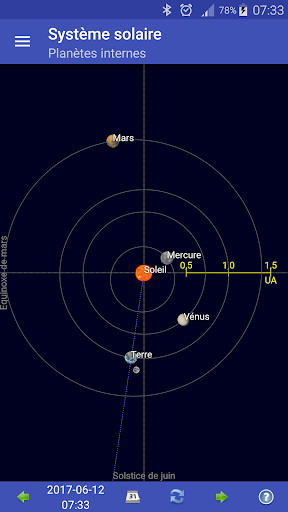 Pour le soleil, la lune et les planètes, vous pouvez calculer des choses comme: * Position (azimut et l\angle d\élévation) * Distance à terre * Hausse et ensemble * Lumière du jour * Phase de lune * Éclipse solaire et éclipse lunaire Les affichages graphiques de: * Phase lunaire actuelle * Objets maintenant au-dessus de l\horizon * Système solaire (position actuelle des planètes) * Lunes de Jupiter (positions actuelles comme vu de la terre) Widgets graphiques pour l\écran d\accueil d\Android: * Phase lunaire actuelle * Objets maintenant au-dessus de l\horizon * Système solaire (position actuelle des planètes)