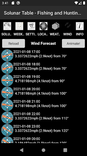 Solunar Table determines the Best Hunting and Fishing Times for any date, any location worldwide. If you like bird watching, hunting, or fishing, have this app handy and it will provide you with the location-specific information that make your next trip a success! .Times apply to ALL wildlife and fish .Location: Auto GPS / Manual Entry data (decimar and DMS format) / Select from map .Major & Minor Feeding / Activity Periods .Activity Index for the day rating .Moon rise / Moon set / Moon Transit times .Moon Phase info / Data .Sunrise / Sunset / Sun Transit times .Day / Weekly view .Date selection for checking solunar data in advance .Any Date / Location .Widget: Solunar on your home screen .Weather condition and forecast .Wind condition and forecast (US) .Wind Animation Based on the original solunar (solar lunar) theory, Solunar determines the peak feeding and activity times for all types of fish and wildlife based on the moon position and lunar phase. With Solunar app, you’ll have all the solunar table information you need to know exactly when the best fishing times and best hunting times will occur for your exact location. When arranging your next trip, just check ahead to find out the best hunting or fishing times for the date you’re considering. It doesn’t matter what you’re after or where, this incredible app will help you maximize your chances success! This app is the perfect planning tool for outdoor activities. Download it to your phone/pad, no additional cost. Add \Solunar - Fishing & Hunting TM\ to your home screen: 1. Go to home screen (Press the “Home” key). 2. Choose an empty space. 3. Long press the space or press the “Menu” button and then press the “Add” button. 4. Tap the menu item labeled “Widgets”. 5. Select \Solunar - Fishing and Hunting TM\. Solunar is on your home screen! Privacy policy: http://www.outdoor-apps.com/privacy.html
