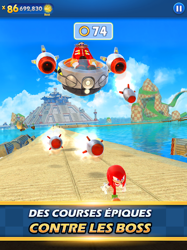 Incarne Sonic the Hedgehog et fonce, saute et tourbillonne à travers des environnements 3D époustouflants. Glisse par-dessus ou par-dessous les obstacles dans ce jeu de course rapide et effréné. Jouez avec Sonic dans ce jeu de course à pied et saut ! Avec Sonic et ses amis, tu pourras traverser d\incroyables parcours en courant, en sautant et en te servant de la super accélération. Tu pourras également débloquer de nouveaux personnages, construire des mondes impressionnants et battre les boss ! Prépare-toi à courir avec Sonic le Hérisson et ses amis dans le jeu original de poursuite sans fin ! Joue, cours et saute sur des circuits 3D amusants en compagnie de Sonic, Knuckles, Tails et d’autres héros de Sonic dans ce jeu de poursuite et de course sans fin. Sonic Dash est un jeu amusant et décontracté pour les enfants comme pour les adultes ! DES CAPACITÉS INCROYABLES Utilise les capacités de Sonic pour éviter les dangers, sauter par-dessus des barrières et prendre des boucles à toute vitesse. De plus, l\attaque téléguidée de Sonic te permet d\éliminer tes ennemis ! DES GRAPHISMES ÉBLOUISSANTS Le monde splendide de Sonic prend toute son ampleur sur mobile et tablette. Le plus beau jeu de course infinie jamais réalisé ! JEUX DE COURSE SONIC Courez et sautez sur des parcours incroyables avec Sonic et ses amis ! Sonic Dash est le premier jeu de course mettant en scène Sonic ! Le premier jeu de course SEGA & Sonic ! Courez et faites la course avec Sonic, affrontez les chefs et gagnez. Jouez maintenant à ce jeu de course passionnant et sans fin ! DE NOMBREUX PERSONNAGES Rejoins Tails, Shadow, Knuckles et d’autres héros Sonic dans Sonic Dash, le jeu de poursuite sans fin super rapide ! Choisis ton coureur préféré et fraye-toi un chemin à travers des mondes Sonic passionnants remplis d’obstacles, de bonus et de défis. Grâce à un gameplay rapide et des graphismes époustouflants, ce jeu est parfait pour les fans de Classic Sonic et des jeux SEGA classiques. DES BATAILLES DE BOSS ÉPIQUES Course contre le diabolique Dr. Eggman et le dévastateur Zazz, de Sonic Lost World ! Utilise la super vitesse de Sonic et son agilité pour vaincre ces méchants à temps ! Jouez le meilleur jeux de course à pied et saut! Jouez à ce jeu amusant de course sans fin ! NE T’ARRÊTE PAS Plus tu joues, plus tu reçois de récompenses ! Améliore ton multiplicateur de score en terminant des missions uniques et gagne de super prix come des Rings Étoile rouge et des personnages supplémentaires en terminant les défis du jour ou en participant à l’essai quotidien. Cours et saute à travers d\incroyables parcours avec Sonic et ses amis ! Sonic Dash est le premier jeu de course sans fin mettant Sonic en vedette ! Le premier jeu de course de SEGA et de Sonic ! Cours et saute avec Sonic, affronte et vaincs les boss. Qu\est-ce que tu attends, viens t\amuser dès maintenant avec ce jeu de course sans fin ! - - - - - Politique de confidentialité : https://privacy.sega.com/en/soa-pp Conditions d\utilisation : https://www.sega.com/EULA Les applications de jeux sont des logiciels reposant sur la publicité et aucun achat intégré n\est requis pour progresser. L\option pour jouer sans publicité est disponible avec les achats intégrés. Courez, sautez et foncez à travers des mondes époustouflants avec Sonic. À l\intention des utilisateurs de plus de 13 ans, ce jeu peut inclure des « Publicités ciblées par centre d\intérêt » et recueillir des « Données de localisation précises ». Veuillez consulter notre politique de confidentialité pour plus d\informations. SEGA. Tous droits réservés. SEGA, le logo SEGA, SONIC THE HEDGEHOG et SONIC DASH sont soit des marques déposées, soit des marques de SEGA CORPORATION.