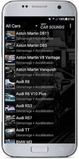 Plus de 200+ sons de voiture - totalement GRATUIT! SONS DE VOITURE est l\application pour les amateurs de voitures qui aiment profiter du son moteur pur des voitures de sport les plus populaires et élégantes partout dans le monde. L\application comprend 200+ sons de voiture provenant de près de 100 modèles différents de toutes les marques de voitures. Parmi eux sont, par exemple, les marques bien connues telles que Audi, BMW, Mercedes, Volkswagen McLaren, Ferrari, Lamborghini et Maserati. Mais non seulement les constructeurs automobiles de renommée mondiale ont été inclus dans l\application BEST CAR SOUNDS. Ici vous trouverez également le son du moteur de modèles exotiques tels que la Bugatti Veyron ou la Pagani Zonda F, qui est généralement difficile à entendre. Maintenant, écoutez tous les sons de moteur agréables qui ne peuvent provenir que d\un V6, V8, V10 ou V12. Correspondant à la voiture respective, vous trouverez également une belle image ainsi que la possibilité d\entendre le son séparément lors du démarrage du moteur ou lors de l\accélération. Avantages de cette application: -------------------------------------- Complètement GRATUIT Plus de 200+ sons de voiture GRATUIT Opération intuitive Chargement rapide Sélection de la langue Partager l\application directement à vos amis via le menu -------------------------------------- Marques de voiture incluses: Alfa Romeo, Aston Martin, Audi, BMW, Bugatti, Chevrolet, Dodge, Ferrari, Ford, Honda, Jaguar, Lamborghini, Lexus, Maserati, Mazda, McLaren, Mercedes-Benz, Mitsubishi, Nissan, Pagani, Porsche, Subaru, Toyota et Volkswagen Parmi eux sont, par exemple, les voitures suivantes: Aston Martin DB11, Audi R8 V10 Plus, RS7 Audi, BMW M5, Bugatti Chiron, Bugatti Veyron, Chevrolet Corvette ZR1, Dodge Charger, Dodge Viper, Ferrari Enzo, Ferrari F12, Ferrari F40, Ford GT, Ford Mustang GT, Jaguar XKR, Jaguar F-Type R, Lamborghini Aventador, Lamborghini Huracán, Lamborghini Murciélago, Lexus LFA, Maserati Granturismo, Maserati Quattroporte, Mazda RX-8, McLaren 720, McLaren P1, Mercedes AMG C63 Noir, Mercedes AMG G63, Mercedes AMG GT, Mercedes AMG SLS, Mitsubishi Lancer Evolution X, Nissan GTR, Nissan Skyline GTR, Pagani Huayra, Pagani Zonda F, Porsche 911 GT3, Porsche Carrera GT, Porsche Cayenne Turbo S, Subaru WRX STi, Toyota Supra, Volkswagen Golf R VII ... et beaucoup plus Traduit en 22 langues différentes: Pour rendre notre application complètement intuitive et facile à utiliser, nous avons traduit SONS DE VOITURE en 22 langues: Anglais, allemand, espagnol, français, italien, russe, portugais, arabe, roumain, tchèque, néerlandais, polonais, turc, malais, persan, suédois, grec, hindi, chinois, bengali, japonais et coréen. Plus jamais l\ennui: Jouez juste un son de voiture devant vos amis et laissez-les essayer de deviner le modèle du son. Après quelques tours, vous ne pourrez plus en avoir assez! Nous vous souhaitons beaucoup de plaisir avec notre application BEST CAR SOUNDS! TÉLÉCHARGER MAINTENANT GRATUITEMENT!