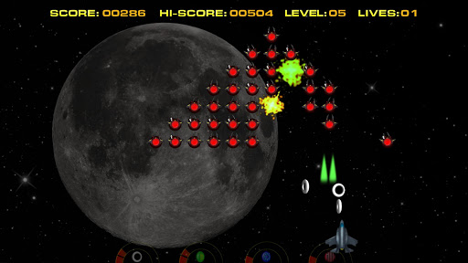 Space Wars est un jeu d’arcade rétro d’action gratuit. Vaincre l’invasion d’extraterrestres entrants. Collecte des power-ups pour améliorer ou obtenir de nouvelles armes et vies. Le jeu utilise des classements mondiaux où tu peux comparer tes scores élevés avec ceux des autres joueurs et défier tes adversaires. Caractéristiques: • Bandes sonores originales • Niveaux de difficulté progressive • 4 armes améliorables + bombe • 50 niveaux uniques • 6 power-ups Conseils: • Pas de dégradation des armes après la mort! (à partir du niveau 25) • Bonus de 10 000 points pour atteindre le niveau 50 • Attrape une bombe sans ennemis autour pour 50 points supplémentaires! Profite du jeu :-)