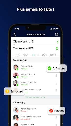 Gérez facilement vos convocations, communiquez entre joueurs et entraîneurs, organisez vos matchs et entraînements : quel que soit votre sport et niveau de pratique. SportEasy est une application qui simplifie la gestion de votre équipe de foot, rugby, basket, handball, volley, hockey ou tout autre sport. Que vous soyez entraîneur ou joueur, l\appli SportEasy vous permet d\être tout le temps connecté à votre équipe ! SportEasy s’adapte à vos besoins, que vous pratiquiez votre sport en loisir ou en compétition, à un niveau local ou national. -------------------------- *Fonctionnalités* Avec l\appli SportEasy, vous pouvez gérer vos: ÉVÉNEMENTS : * voir le calendrier de vos équipes * voir le lieu, l’heure, la date de chaque événement * voir la liste des participants/absents * voir et partager la composition de l’équipe CONVOCATIONS : * être notifié des prochains matchs, entraînements, tournois * donner votre disponibilité pour un événement MESSAGES : * discuter avec vos joueurs, coéquipiers, entraîneurs, parents * recevoir les messages importants de l’entraîneur STATISTIQUES : * voir le résultat du match, les buteurs, marqueurs de points, et autres stats. * voter pour l\homme du match, noter le match et les joueurs -------------------------- *SportEasy pour tous, partout !* CLUB/ASSOCIATION : gérez plusieurs équipes d’un même club, d’une même association, sur SportEasy. Les dirigeants et bénévoles aussi adorent SportEasy. GROUPE D’AMIS : vous jouez au foot à 5, au basket, au touch-rugby, chaque semaine entre ami(e)s ? SportEasy va devenir votre nouveau meilleur ami. CORPO/ENTREPRISE : vous pratiquez un sport au sein de votre entreprise, dans le cadre de votre travail, avec vos collègues ? SportEasy apporte du bonheur au bureau. ECOLE/UNIVERSITÉ : vous faites partie de l’équipe de votre école, de votre université ? SportEasy c’est du temps gagné, donc des études réussies, forcément. FOLKLO : vous pratiquez votre sport dans un championnat folklore, plus pour la fête et l’amitié que pour les trophées ? On comprend, et on encourage. Homme ou femme, adulte ou enfant, utilisez SportEasy depuis chez vous, au bureau, au gymnase, au stade, au bord du terrain, dans les vestiaires, dans le transports en commun, à la plage, etc. -------------------------- *SportEasy et votre sport* SportEasy est disponible pour les équipes, et clubs de : baseball, basketball, cricket, floorball, football, football américain, football australien, handball, hockey sur gazon, hockey sur glace, kayak polo, lacrosse, polo, roller hockey, rugby, street hockey, ultimate, volley, water-polo. L’app est également disponible pour tous les autres sports (notamment les sports individuels) : tennis, tennis de table (ping pong), natation, badminton, golf, danse, équitation, vélo, cyclisme, randonnée, etc. -------------------------- *Fonctionnalités à venir* SportEasy évolue très régulièrement, pour votre plus grand plaisir, et aussi un peu pour le nôtre. Nous prévoyons d’ajouter de nouvelles fonctionnalités dans les prochains mois : gérer/modifier tout le profil d’un membre de l’équipe envoyer des SMS de rappel de convocations synchroniser votre calendrier SportEasy avec votre calendrier de smartphone D’autres envies ? Envoyez nous vos idées : contact@sporteasy.net
