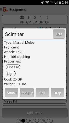 Imagine you had just escaped from a prison cell. You have no armor and no weapons (now take time to recalculate your AC and attack roles). You bare-hand fight your way through the guards to the armory and you get all of your gear back. You put your armor back on and equip your trusty weapon (take the time to recalculate your AC and attack roles AGAIN). Now you’re on your way trying to get out of the prison and you go through a series of encounters, each of which you have used different spells or shot your weapons multiple times. You’re finally at the front door and the main boss is blocking your way. You engage him and just as you are about to attack, you can’t remember if you’ve already used all of your spell slots or if you’ve shot all of your arrows. This app is designed for role playing games which requires a lot of different calculations to be made for each attack, skill check, and defense. A lot of work goes into maintaining your character sheet. This app does a lot of the work for you. With this app you can: - Create multiple characters - Use multiple classes for a single character - Create new weapons, armor and gear - Purchase items that have already been created - Create spells and features - Apply conditions to you character which will automatically apply penalties and benefits - Attack using the equipment you have purchased or spells that you have selected/prepared - Automatically calculate all the modifiers that need to be applied to each roll - Automatically calculate proficiencies - Quickly equip or unequip items and have your stats change automatically - Casting of spells will expend spell slots and taking a long rest will replenish them - Easily level up - Take notes All of these features are the same as the free app. This app has these additional features: - Create magical items - Play as a GM - Create/Control Monsters - Control the initiative order With this app, you will be able to focus more on the game rather than on keeping up to date with all of your characters’ stats. With fewer interruptions, you will be able to feel more like you are actually in the action and will be able to feel what your character is actually going through. You will be able to make better, more realistic decisions that your character would actually make and the game will be more fun because of it. To see a list of the upcoming features, please visit this page: http://squire-character-mangement.azurewebsites.net/Home/UpcomingFeatures