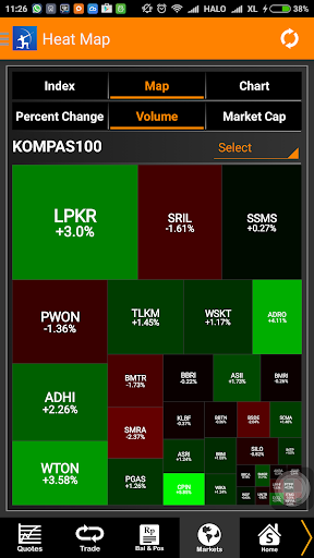 STAR — Samuel Trading Active Realtime Online stock trading application from Samuel Sekuritas for the Indonesia Stock Exchange. STAR is a free Android application for all Samuel Sekuritas Indonesia account holders. Trade and monitor your stock positions in real time. Get detailed charts, stock alerts, and timely information to make you a winning trader. Features: • MyQuotes — store up to 30 stocks in 3 different watchlist for quick reference of latest price and percentage change • Running Trade — see the latest Indonesian stock trades streaming on your Android device • MyAlerts — receive an e-mail alerts when a stock reaches a certain price • StockFinder — search for all stocks on Indonesian stock exchange by stock code or name • Detail Quote — get Level II orders & Trade Book by price as well as key stock information • Chart — see an Interactive Line, Candlestick chart and volume for intraday, 1 month, 3 month, 6 month, 12 month and range of time periods. • Heatmap • Order status — monitor the status of all your orders and amend or withdraw orders at anytime. • Portfolio — get portfolio value and unrealized gain calculation in real time • Market Summary — monitor Top Gainers, Top Losers, and Most Active Indonesian stocks • Get the latest Samuel Research and Financial News. • Automatic Trade Confirmations-- sent by e-mail or SMS • Trial Account for 30days The information for these tools provided by Samuel Sekuritas Indonesia. Terms and conditions for software use apply. Please go to www.samuel.co.id for more information. Copyright 2011 by PT Samuel Sekuritas Indonesia. All rights reserved.