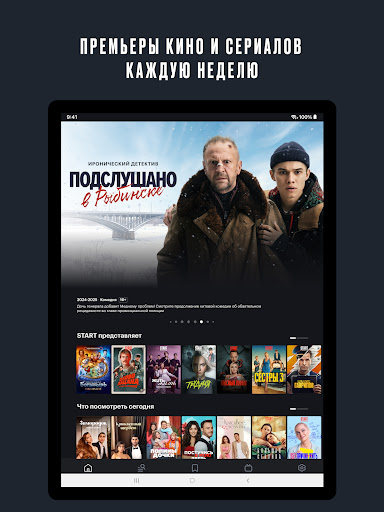 Онлайн-кинотеатр START снимает и показывает сериалы, которые регулярно возглавляют зрительские рейтинги. А ещё на START большая библиотека кино, сериалов и мультфильмов от ведущих студий мира и 200+ телеканалов онлайн — всё это в единой подписке без доплат! START — это: — одна подписка на весь каталог; — премьеры сериалов и фильмов собственного производства START; — большой выбор кино, сериалов, мультфильмов от главных студий; — доступ к любимым фильмам на всех устройствах в любой точке мира; — 200+ телеканалов, включая популярные (СТС, «Пятница!», ТНТ, «Матч ТВ» и множество других), которые можно смотреть онлайн; — дополнительные материалы о съемках; — возможность смотреть кино и сериалы на любых устройствах; — качество Ultra HD 4K; — никакой рекламы, совсем; — функция скачивания и просмотра без интернета (можно скачивать и кино, и эпизоды сериалов, и мультики); — до 5 отдельных пользовательских профилей, а для детей — безопасный детский режим без взрослого контента; — 7 дней бесплатно для новых подписчиков. Подписка на онлайн-кинотеатр START дает возможность смотреть весь каталог с новинками кино, эксклюзивными сериалами и премьерами. И всё это по цене пары билетов в обычный кинотеатр. Что такое «пробная подписка» на неделю? Первые 7 дней все новые пользователи могут смотреть START бесплатно. Если в течение этих 7 дней вы отмените подписку, автопродление отключится автоматически. И фильмы с сериалами отключатся тоже. Если этого не сделать, после пробного бесплатного периода с вашего счета будет списана месячная оплата подписки. Далее подписка будет автоматически продлеваться каждые 30 дней, пока вы ее не отмените. Остались вопросы? Напишите нам: support@start.ru