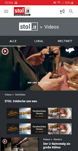 STOL, Nachrichten für Südtirol! Jederzeit und überall sofort informiert mit den schnellsten News von stol.it. Mit interessanten Beiträgen und unterhaltsamen Videos. Chronik, Politik, Wirtschaft, Sport, Comedy und vieles mehr. Damit Sie keine Nachrichten verpassen, pushen wir alle wichtigen Meldungen direkt an Ihr Smartphone! Für einen schnellen und persönlichen Zugriff, können Nachrichten zu den einzelnen Bezirken direkt aufgerufen werden. Der ausgewählte Bezirk wird in die Navigationsleiste übernommen. In den Einstellungen kann der Bezirk geändert werden. In der Mediathek bietet die Stol.it App multimediale Inhalte wie Bilder des Tages, Fotogalerien, Videos und Comedy für unterwegs. Die STOL-App im Überblick: - Neuigkeiten auf einem Blick - Push Notifications - Multimedia Inhalte wie Videos und Comedy für unterwegs - Südtirolwetter - Suchfunktion für alle Meldungen - Meldungen einfach via Mail oder Facebook Freunden empfehlen Viel Spaß mit der App wünscht das STOL-Team Stol Technik: support@stol.it Tel.: +39 0471 925 321 AGB\s: https://www.stol.it/p/agb
