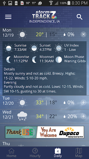 KWWL is proud to announce a full featured weather app for Android. Features * Access to station content specifically for our mobile users * 250 meter radar, the highest resolution available * Future radar to see where severe weather is headed * High resolution satellite cloud imagery * Current weather updated multiple times per hour * Daily and Hourly forecasts updated hourly from our computer models * Ability to add and save your favorite locations * A fully integrated GPS for current location awareness * Severe weather alerts from the National Weather Service * Opt-in push alerts to keep you safe in severe weather