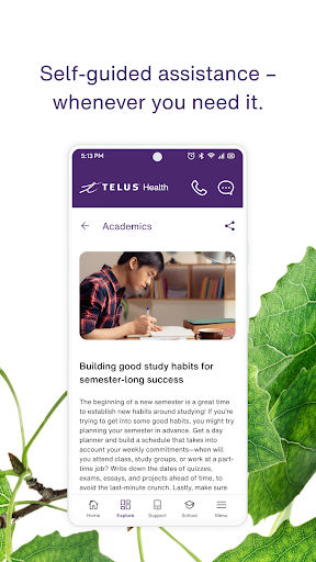 Créée par des spécialistes cliniques et culturels, l’appli de soutien aux étudiants (anciennement Mon PSE) aide les étudiants à réussir en leur donnant accès au programme Soutien aux étudiants TELUS Santé (Soutien aux étudiants). Les étudiants peuvent accéder au programme partout et en tout temps pour communiquer avec des cliniciens multilingues. Notre équipe a l’habitude de travailler avec des étudiants issus de milieux variés et comprend les défis auxquels ils font face.