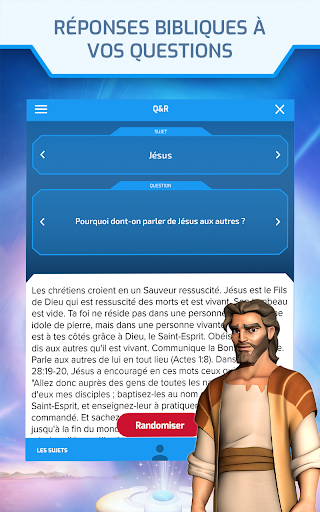 L\application Superbook Kids Bible est disponible gratuitement et comprend: BIBLE COMPLETE POUR ENFANTS Une Bible complète et facile à comprendre pour les enfants Comprend plusieurs versions de la Bible ainsi qu\une Bible audio pour les enfants de tous âges à écouter JEUX BIBLIQUES AMUSANTS POUR ENFANTS Jouez à 20 jeux bibliques amusants Jeux de mots bibliques, Jeux d\action bibliques et Jeux de questions bibliques ÉPISODES COMPLETS DE SUPERBOOK Regardez 13 épisodes gratuits de la série d\animation vidéo pour enfants nominée aux Emmy Awards - Superbook Téléchargez et regardez des épisodes complets hors ligne VERSE BIBLE QUOTIDIEN POUR ENFANTS Une façon amusante pour les enfants de lire la Bible chaque jour Apprenez un verset biblique quotidiennement tout en jouant à des jeux bibliques amusants RÉPONSES AUX QUESTIONS BIBLIQUES DES ENFANTS Réponses aux questions courantes que les enfants posent sur Dieu, Jésus et la Bible Il est comment Dieu? Comment peut-on recevoir Jésus dans son coeur? À quoi le Paradis (le ciel) ressemble-t-il? Et des centaines d\autres questions et réponses bibliques pour les enfants DÉCOUVRE COMMENT TU PEUX CONNAÎTRE DIEU Faites l\expérience d\un partage du message de l\Évangile adapté aux enfants et découvrez comment vous pouvez commencer une amitié avec Dieu PERSONNES, LIEUX ET ARTEFACTS DE LA BIBLE Cette application biblique gratuite pour enfants comprend également des centaines de profils de personnes, de lieux et d\artefacts trouvés dans la Bible Des Images attrayantes avec des biographies détaillées UU CONTENU DYNAMIQUE DE LA BIBLE Des Vidéos et contenu interactif intégrés dans une Bible attrayante pour les enfants Les versets comprennent des questions et réponses bibliques convenables, des profils bibliques, des jeux bibliques, des clips vidéo, des images et plus encore Interagissez facilement avec chaque chapitre et verset de la Bible pour enfants ENGAGEMENT DE LA BIBLE INTERACTIF Participez aux défis bibliques quotidiens - une collection de défis de jeu qui comportent un verset biblique encourageant du jour Découvrez les réponses bibliques à des questions importantes pour les enfants - des questions sur la vie, l\éternité, Jésus et la Bible Choisissez la bonne réponse dans un jeu Trivia biblique engageant - questions importantes pour les enfants avec des réponses bibliques amusantes Essayez de trouver tous les mots cachés dans un jeu de recherche de mots difficile Décodez les versets de la Bible avant que le temps réglementaire soit écoulé dans le jeu passionnant Scrabble de Verset biblique UNE APPLICATION PERSONNALISÉE DE LA BIBLE POUR LES ENFANTS Prenez des notes et joignez-les aux versets Bibliques Marquez vos Versets bibliques préférés / favoris Marquez les passages à l\aide de plusieurs choix de couleurs Une collection complète de vos notes, versets préférés et photos personnelles est accessible depuis la zone Mes affaires de l\application Bible pour enfants Vous pouvez également choisir différentes polices et tailles de police et changer votre écran pour avoir un fond noir cool avec des lettres blanches AUTRES CARACTÉRISTIQUES DE L\APPLICATION SUPERBOOK DE LA BIBLE POUR ENFANTS Une fonction de recherche qui vous permettra de rechercher dans la Bible ou de rechercher des fonctionnalités et du contenu interactif dans l\application Bible pour enfants Envoyez vos versets préférés, vos photos personnelles avec des versets bibliques et vos notes à vos amis L\application Superbook Kids Bible est disponible en anglais, espagnol, russe et arabe Cette bible gratuite pour enfants comprend plusieurs versions de la Bible ainsi que l\audio pour la nouvelle traduction vivante . L\application Superbook Bible App pour les enfants est une merveilleuse expérience biblique pour toute la famille. Téléchargez l\application Superbook Kids Bible App aujourd\hui et commencez l\aventure d\une vie!