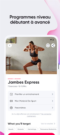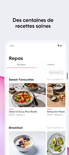Entraîne-toi à la maison ou à la salle de sport avec l\une des plus grandes communautés de fitness pour femmes au monde ! Fais le plein de motivation grâce à Sweat, l\application d\entraînement personnel mettant en vedette Kayla Itsines, co-fondatrice et coach d\élite. Sweat offre une large gamme de programmes stimulants, mais réalistes, avec des entraînements que tu peux effectuer où tu veux, quand tu veux, et visant à développer progressivement ton niveau de fitness. Les nouveaux programmes vont te donner encore plus de moyens de te dépasser et de te rapprocher de tes objectifs. Reste motivée grâce aux défis de la communauté virtuelle et au soutien des autres femmes partageant le même état d\esprit que toi. Rejoins Kayla et les autres coachs de renommées mondiales sur Sweat : Kelsey Wells, Chontel Duncan, Sara Colquhoun, Britany Williams, Phyllicia Bonanno, Cass Olholm, Ania Tippkemper - et bien plus encore ! — Sur ton parcours fitness pour faire le plein de confiance. Tous les nouveaux membres bénéficient d\un accès exclusif leur donnant droit à un essai gratuit. Trouve le style d\entraînement qui te convient avec des entraînements faciles à suivre pour les débutantes, intermédiaires et confirmées, notamment : - HIIT (Entraînement par intervalles à haute intensité) - Entraînement sous forme de Circuit - Exercices au poids du corps - Powerbuilding - Musculation - Yoga - Barre au sol - Pilates - Récupération - Cardio - Grossesse et période postnatale Entraîne-toi à ta façon — suis un programme complet ou entraîne-toi à la carte. Choisis des entraînements adaptés à ton style de vie : sessions sans matériel, poids libres ou avec appareils de musculation. Opte pour les entraînements express lorsque tu manques de temps. Les fonctionnalités de l\application Sweat te permettent de rester sur la bonne voie et de suivre facilement tes progrès. Ces fonctionnalités incluent : - Descriptions d\exercices et vidéos de démonstration - Substitutions d\exercices pour rendre les mouvements plus difficiles ou plus faciles - Messages audios du coach - Enregistrement des poids utilisés pour les programmes conçus pour la salle de sport - Calendrier pour programmer tes entraînements et suivre tes progrès hebdomadaires - Partage tes « sweaty selfies » avec tes amies et la communauté Sweat pour rester motivée - Section informations éducatives complète dédiée à la condition physique, la nutrition et le bien-être - Plus de 200 repas rapides et frais pour tous les styles de vie - Compteur de pas quotidien et mesure de ton taux d\hydratation - Accès 24h/24 et 7j/7 à la communauté Sweat PRIX ET CONDITIONS D\ABONNEMENT Sweat est téléchargeable gratuitement. Son utilisation nécessite un abonnement actif, disponible sur une base mensuelle ou annuelle. Les nouvelles clientes qui optent pour un abonnement mensuel ont droit à une période d\essai gratuite. Les abonnements annuels sont facturés dans leur totalité en une fois à compter de la date d\achat. Les utilisateurs bénéficiant d\un abonnement mensuel sont facturés au mois. Le paiement sera débité de votre carte de crédit via votre compte Google Play lors de la confirmation d\achat. L\abonnement est renouvelé automatiquement sauf en cas d\annulation au moins 24 heures avant la fin de la période d\abonnement. Il n\y a pas d\augmentation de prix lors du renouvellement. Les abonnements peuvent être gérés et le renouvellement automatique désactivé depuis les paramètres de votre compte Google Play après votre achat. Une fois acheté, aucun remboursement ne sera accordé pour toute portion achetée mais non utilisée de l\abonnement. Merci de consulter nos conditions d\utilisation et notre politique de confidentialité sur https://www.sweat.com/privacy