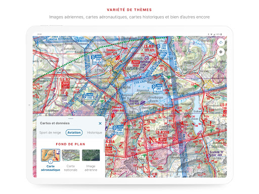 En route avec la meilleure application de l\année : l\application de swisstopo a remporté le prix \Master of Swiss Apps 2021\. Grâce aux célèbres cartes nationales, découvrez aussi les lieux les plus reculés de Suisse, ainsi que des thèmes comme la randonnée, le cyclisme, les sports de neige ou l’aviation. Toutes les fonctions et données de l\application ainsi que l\utilisation hors ligne sont gratuites. L\application ne contient pas de publicité et ne nécessite pas de compte d’utilisateur. - toutes les échelles de 1:10 000 à 1:1 million - image aérienne actuelle et cartes historiques - chemins de randonnée officiels pédestre, de montagne et alpine - fermetures des chemins de randonnée - itinéraires en raquettes et à ski - itinéraires de SuisseMobile - arrêts des transports publics POUR TOUT DÉPLACEMENT - des cartes hors ligne gratuites (1:25 000 à 1:1 Million) - dessiner, enregistrer, importer et partager ses propres tours - définir le type de tour (pour la randonnée, le vélo, le VTT) et la vitesse souhaitée - guide de parcours (heure d\arrivée, distance restante) - mode panorama (identification du sommet des montagnes , visualiser le tour en \3D\) - mettre des repères, compléter avec des notes, partager OUTILS tels que mesurer, comparer et rechercher (par noms géographiques, adresses ou coordonnées) Annoncer des modifications dans les cartes et les géodonnées AVIATION - Cartes aéronautiques, obstacles et espaces aériens - Places d\atterrissage - Restrictions pour les drones et les modèles réduits d\aéronefs Vous avez une question ? Alors écrivez-nous : support-cd@swisstopo.ch