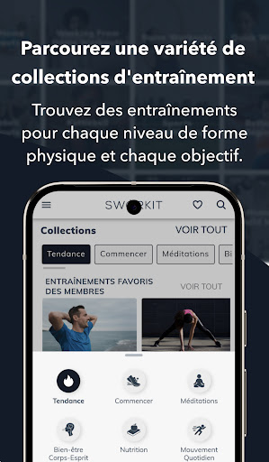 Sworkit vous permet de créer et de suivre des entraînements personnalisés en vidéo: - Choisissez parmi les catégories Force, Cardio, Yoga et Étirement - Sélectionnez une durée comprise entre 5 et 60 minutes. - Suivez la vidéo du coach pour savoir exactement ce vous devez faire ! Enfin ! Des entraînements personnalisés qui s’adaptent à votre emploi du temps et vos objectifs plutôt que de devoir ajuster votre agenda pour faire du sport. Entrainez-vous où que vous soyez, au moment que vous désirez, sans nécessiter d’équipement. Rejoignez les 25 millions d\utilisateurs qui ont téléchargé les applications Sworkit pour vous aider à réaliser vos objectifs de fitness. ESSAI GRATUIT Essayez Sworkit gratuitement pendant 7 jours! Si vous décidez que Sworkit n\est pas pour vous, il vous suffit d\annuler votre abonnement sur Google Play quelques jours avant la fin de votre période d\essai pour éviter d\être facturé. Mais si vous avez déjà un entraîneur, ne le virez pas ! Demandez-lui de vous établir un programme sur-mesure, à faire entre les entraînements. Et si vous avez des besoins particuliers (comme un problème de genou, et besoin d\éviter les exercices sautés), créez votre propre programme, à partir des 160 exercices de notre bibliothèque. Synchronise à MyFitnessPal et Santé Ciblez une zone de votre corps : Haut du corps, bas du corps, corps entier, abdominaux, fessiers, dos, jambes, etc. Des entraînements adaptés à tous : Musculation, cardio, yoga, stretching et pilates. Sworkit utilise une méthode scientifique qui combine entraînement fractionné et exercices aléatoires, pour maximiser l\efficacité de chaque entraînement. Le mieux est qu\aucun de ces entraînements aléatoires en circuit ne nécessite de poids ou d\autre équipement. Vous pouvez choisir la durée et les zones à travailler, pour créer l\entrainement parfait, partout, tout le temps. Recommandé par Mashable, LifeHacker, Gizmodo, Brit+Co, Army Times and Addictive Tips. CARACTÉRISTIQUES DE SWORKIT •Entraînements sans publicités •Exercices à faible impact pour débutants et seniors •Intervalles personnalisables pour les exercices •Enregistrement illimité de vos entraînements personnalisés (et encore plus de possibilités de personnalisation) •Séances exclusives d\entraînement à la préparation musculaire •Option « Demander à un coach » • Accès à Sworkit sur tous les appareils compatibles, y compris notre application Web et Apple TV PRIX Sworkit est disponible par l\intermédiaire d\un abonnement mensuelle à 15,99 € ou annuel à 94,99 €. Chaque abonnement est auto-renouvellement. Abonnement applique à Sworkit - Workout App pour l\exercice quotidien et de remise en forme Workouts Détails de l\abonnement: Abonnement renouvelle automatiquement à moins que le renouvellement automatique est éteint au moins 24 heures avant la fin de la période actuelle. Le paiement sera porté à votre compte Google Play à la confirmation de l\achat. Compte sera débité de renouvellement dans les 24 heures avant la fin de la période en cours, et d\identifier le coût du renouvellement. Les souscriptions peuvent être gérés par l\utilisateur et le renouvellement automatique peut être désactivée en allant à les paramètres du compte de l\utilisateur après l\achat. Aucune annulation de l\abonnement en cours est autorisé pendant la période d\abonnement en cours. Modalités, une Politique de confidentialité disponible à http://m.sworkit.com/TOS.html & http://m.sworit.com/privacy.html