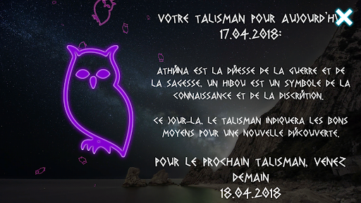 Bienvenue sur l\application Talismans de la Grèce Antique ! Vous trouverez ici une collection de talismans magiques qui peuvent porter chance et vous protéger des ennuis. Aujourd\hui, les talismans de la Grèce sont accessibles à tous les propriétaires de smartphones. Une application unique sur votre téléphone vous permettra de porter des amulettes au quotidien, d\être sous leur protection et de vous sentir en confiance. Comment utiliser l\application ? Très simple: ️ Téléchargez notre application - Talismans de la Grèce Antique ; ️ Plongez-vous et ressentez l\atmosphère de la Grèce antique à l\aide d\une belle interface ; ️ Touchez la pierre angulaire magique qui déterminera votre talisman personnel pour la journée en cours ; ️ Apprenez à connaître votre talisman, découvrez quels pouvoirs il recèle en lui et de quelle protection vous bénéficierez pendant la journée. Les amulettes et talismans porte-bonheur sont des symboles puissants qui attirent l\énergie positive et les événements favorables à leur propriétaire. Il existe de nombreux talismans, chacun cachant sa propre énergie. Les gens utilisent des amulettes depuis des siècles pour se protéger, attirer l\amour, réussir en affaires et surmonter les difficultés. Dans les temps anciens, à l\aide d\amulettes, diverses divinations étaient réalisées et des prédictions étaient faites pour l\avenir. Les horoscopes modernes, la divination, les boules magiques, la chiromancie, l\ésotérisme, l\astrologie diffèrent à bien des égards des talismans, car ils portent la magie de la protection et de la chance. Les talismans de la Grèce antique deviendront votre guide à travers le temps, offrant une perception visuelle et une immersion complète dans l\atmosphère de la Grèce antique. Les amulettes quotidiennes ne sont pas seulement un cadeau pour vous-même ou pour un être cher, mais aussi une opportunité de porter chaque jour avec vous l\esprit de la sagesse et de la force anciennes. Les symboles des belles amulettes vous rappelleront votre lien avec les anciens dieux de la Grèce et vous apporteront chance et prospérité. Tout cela est disponible grâce à une application téléphonique unique et gratuite qui combine amulettes traditionnelles, talismans et technologie moderne et perception esthétique. ️ Découvrez dès aujourd\hui le monde magique des talismans grecs et laissez-les devenir vos fidèles compagnons sur le chemin du succès et du bonheur. ️Attention ! Vous ne pouvez recevoir qu\un seul talisman par jour pour vous protéger. N\oubliez pas d\en acheter un nouveau demain ! Il est très important!