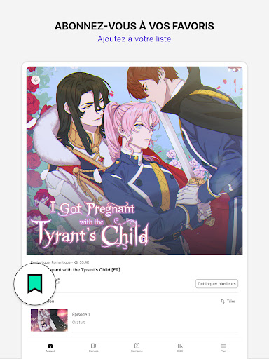Des bandes dessinées aux histoires pleines de couleurs, de personnages et de charme! Profitez des meilleures nouvelles bandes dessinées et webtoons en exclusivité sur Tappytoon. Tappytoon est la source officielle et fiable pour lire les bandes dessinées des meilleurs artistes. Soyez les premiers à accéder aux épisodes les plus récents avec des mises à jour quotidiennes de séries populaires de l’action telles que The Skeleton Soldier Failed to Defend the Dungeon et A Returner’s Magic Should be Special ou du Fantastique comme The Twins’ New Life . Ne manquez pas les hits de la Romance The Villainess Lives Again et The Villainess Turns the Hourglass , ainsi que de toutes nouvelles aventures du quotidien comme The Girl and the Geek et bien plus encore, le tout en français. Si vous êtes plutôt BL n\hésitez pas à découvrir The Sweetest Man, ou encore Addiction seulement sur Tappytoon. ►Des mises à jour officielles de webtoons et manhwa exclusifs Tout comme vous, nous adorons lire des Webtoons ! Tappytoon est LE meilleur endroit pour accéder à des webcomics, BD et comics que vous ne trouverez nulle part ailleurs. ►Pas encore prêt(e)à franchir le pas? Pas de problème Découvrez de nombreuses bandes dessinées et webtoons grâce à des épisodes gratuits et sans inscription. Et lorsque vous êtes prêt(e), l\inscription vous donnera accès à des offres exclusives sur Tappytoon. ► Acheter des tokens, gagnez des points, débloquez des épisodes pour continuer votre aventure webtoon Soutenez les créateurs de BD en achetant des tickets et recevez des points gratuitement. ►Mises à jour quotidiennes Plongez au cœur de notre riche line-up: de l\action haletante, du fantastique, de la comédie, de la romance, du BL, du GL. Surtout ne manquez pas des séries telles que The Villainess Lives Again, The Twins’ New Life et The Villainess Turns the Hourglass. ► Des tickets gratuits pour découvrir de nouvelles BDs, webtoon et comics Obtenez des tickets gratuits pour débloquer plus de chapitres de BD et de webcomics incontournables. ► Ne manquez jamais le dernier épisode Abonnez-vous à vos BD, manhwa ou comics préférés et nous vous informerons tout de suite lorsqu\un nouvel épisode est disponible. ► Des oeuvres magnifiques hautes en couleur Des graphismes de haute qualité par nos artistes talentueux qui vous en mettront plein les yeux. Des manhwa , webtoons et webcomics en couleur à vous couper le souffle. Téléchargez-le maintenant et profitez-en dès aujourd\hui pour lire des histoires incroyables telles que The Villainess Lives Again, The Twins’ New Life et The Villainess Turns the Hourglass. Manhwa, webtoon, bandes dessinées, et romans graphiques premium - Tappytoon – Suivez-nous ! Facebook : https://facebook.com/Tappytoon Twitter : https://twitter.com/Tappy_toon Instagram : https://instagram.com/Tappy_toon Assistance email : support[@]tappytoon.com – https://www.tappytoon.com/terms Chez Tappytoon, nous adorons les BDs et nous savons bien que vous aussi. En lisant vos webtoons préférées sur Tappytoon, vous soutenez les créateurs et leur permettez de continuer à partager leurs histoires de la meilleure des façons. Merci de nous rejoindre ! Les contenus sur Tappytoon ne sont disponibles qu\en anglais, français, et allemand pour le moment. (Les épisodes sont séparés d\une langue à l\autre, la disponibilité des contenus varie par langue) Tous les contenus sur Tappytoon sont proposés en partenariat officiel avec chacun des créateurs et artistes. Tappytoon / Contents First Inc - Tous droits réservés.