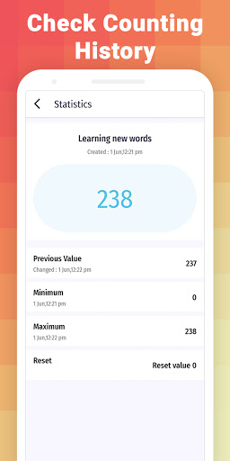 Counter is an easy counting app for android. You can add multiple counters with custom names. Also set required values in every counter. For tasbih counting & for mantra counting, this app is a very handy tool to operate through your smartphone. How Counter Online: Click Counter & Tally counter works? ➥ Install Counter Application ➥ Add new counter ➥ Give custom name, color and category to counter ➥ Add custom categories ➥ Full screen counting access is also available ➥ Set required values for counter ➥ Increasing or decreasing the value option is also available ➥ Set minimum or maximum value for your counter ➥ Add multiple fast counters easily ➥ Set custom details along with each counter ➥ Give custom name & category to counters ➥ Overview your counters in Grid or List type ➥ You can hear sound with your every count ➥ Do volume formatting from settings ➥ Light mode / Dark mode available Interesting Features: ➩ Full screen counter mode is available ➩ You can put multi counters for a different purpose ➩ Set counterwise custom colors ➩ Enable negative values as well ➩ Volume action with every clicks ➩ Set volume as count voice or click sound ➩ Check detailed statistics ➩ Set custom actions & set counter widget ➩ Dark and Light theme modes ➩ Organize counters in groups ➩ Easy drag and sort available ➩ Set maximum and minimum value limits ➩ Check counting history Why to have Counter Online: Click Counter & Digital Tally counter in Your Smartphone: ➪ To count everything easily ➪ Use app as Tasbih counter ➪ Easy digital tool for counting things online ➪ App works same as tally counter machine with advanced features ➪ An easy clicker counter Application ➪ Easily start countdown for any games/sports you play ➪ Count for your healthy routine habits ➪ The counter which makes your every counting easy ➪ Works as log counter & net counter effectively Most efficient application for following purposes : ➜ Digital Tasbih counting / tasbeeh counter ➜ Mantra counting ➜ Sports activity counting ➜ Point counting, net counting, log counting ➜ Click speed test ➜ Footfall counting ➜ Score counting ➜ People counter ➜ Pushups counting Online counter is a multipurpose application to count things easily with clicks. Use this application as an easy handy tool available in your smartphone for counting.