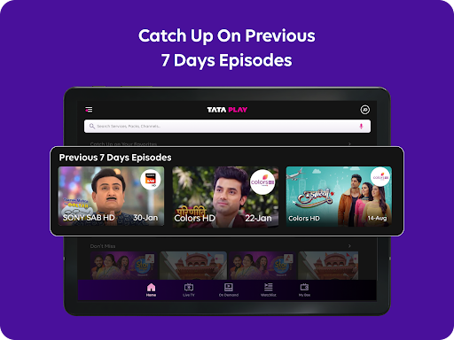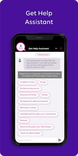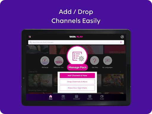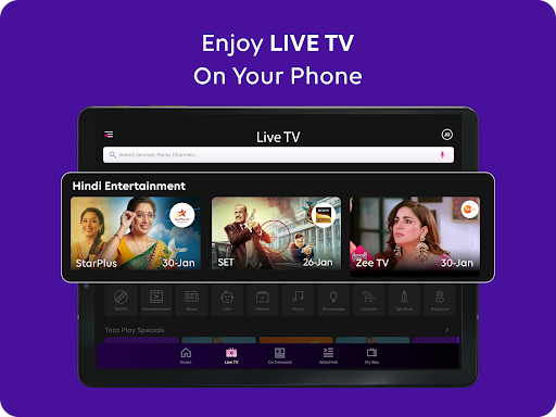 Tata Play Mobile App enhances your DTH journey offering you a truly personalized experience. Manage your pack, recharge, and watch TV channels from anywhere - all in this one handy Tata Play Mobile App! Key features include: • Easy recharging: Use credit/debit cards, net banking, wallets, or UPI to top up your DTH plan. • Managing your account: Add/ drop channels or make your own pack as per your interests. Or simply view your account details. • Get Help Assistance: Use the Get Help chat assistant to resolve your issues immediately – raise & track requests and complaints. • Use app in your language: Tata Play Mobile App is available in English, Hindi, Bengali, Kannada, Malayalam, Marathi, Tamil, and Telugu. • Live TV: Watch your favourite TV channels on your smartphone or tablet, anytime, anywhere. Why pay more when you can save - Avail exclusive offers & coupons on your DTH recharge. No hidden charges when recharging on the Tata Play Mobile App. Customize your pack by dropping the channels you don’t watch and explore new packs that fit your preference. What’s more? You can enjoy Jingalala entertainment from anywhere! • Tata Play on multiple devices: Log in with up to 10 devices & watch content simultaneously on 2 devices! • Watch up to 600+ TV channels, anytime, anywhere: Enjoy Sports, news, entertainment, movies, and more at your convenience. • OTT apps: Get Netflix, Amazon Prime, and Tata Play Binge now with your Tata Play DTH subscription. • Tata Play Specials: Access curated content without ads on Tata Play Specials where there’s something for everyone. • Parental Controls: Set parental controls to ensure age-appropriate content for your family. Activate the app with your existing Tata Play account today! Write to us at help@tataplay.com for any queries/feedback etc.
