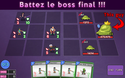 Tavern Rumble est un jeu de cartes stratégique roguelike deckbuilder gratuit. Commencez votre aventure avec des cartes de mercenaires de base, battez-vous, obtenez du butin et renforcez votre deck pour affronter de puissants boss. Découvrez les synergies entre les cartes. Une carte peut sembler inutile seule, mais avec d\autres, elle peut devenir votre arme la plus puissante. **Élément Roguelike** : Pour ceux qui ne connaissent pas, un roguelike est un jeu avec des donjons aléatoires, du butin, des mercenaires, des monstres, et surtout, la mort permanente. Chaque partie est donc une nouvelle expérience qui n\est pas liée aux parties précédentes. Avez-vous ce qu\il faut pour atteindre la fin du jeu? Créez un deck unique comme jamais vu dans d\autres jeux de cartes, rencontrez des créatures étranges, recevez des bénédictions de puissance inimaginable, tuez des monstres, échappez à la boucle de la tour! Avancez dans une quête profonde et arrêtez d\errer seul dans la nuit la plus sombre. C\est comme rêver de devenir le héros légendaire tueur de monstres, embarquant dans un voyage au milieu de nulle part pour accomplir une prophétie creuse d\un prophète. Ne laissez pas votre faim de pouvoir vous consumer! **Fonctionnalités** : Jeu de cartes parfait pour votre pause-café de 30 minutes Chaque classe jouable offre plus de 100 cartes que vous pouvez choisir pendant le jeu Petits sprites mignons en pixel art Facile à apprendre, difficile à maîtriser Recrutez des cartes de héros légendaires et combattez à leurs côtés. Aux armes !! Jouez hors ligne sans connexion Internet Ou connectez-vous et soumettez vos scores à Google Play Games Totalement gratuit **Classes disponibles** : ♞ Chevaliers du Pentagone : Chevaliers forts avec un équilibre entre attaque et défense Guilde des Chasseurs : Maîtres du poison, de la pioche de cartes et des effets de défausse. Relevez-vous et utilisez les ombres pour combattre vos ennemis ! Clan Roughrock : Unités qui se blessent elles-mêmes, buffs d\équipe et unités fortes et indépendantes Terre des Morts : Armée des morts-vivants. Avec l\aide d\Hadès et de ses amis, combattez les ténèbres en vous Famille Transylvanie : Dracula et les vampires suceurs de sang ✭ Académie Magique : Utilisez la magie pour invoquer de puissants êtres ou détruire directement des monstres ㊋ Communauté du Vide : Engagez des mercenaires composés de ninjas et de voleurs. Surveillez vos arrières ! Ville