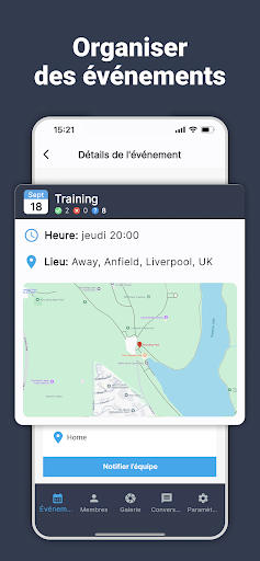 Teamer est une application de gestion d\équipe sportive GRATUITE. Organisez votre équipe sportive via internet ou votre téléphone. Inscrivez votre équipe dès aujourd\hui! Confiance par 2 millions par membres! Le système de notification d\événement de Teamer envois les notifications via mail, app messages pour être sûr que vos membres soient informés instantanément ou qu\ils soient. Tous les notifications et les applications mobiles sont complètement gratuite. Les réponses sont inscrites sur la TeamPage en temps réel, donc vous saurez qui sera là au prochain événement. Mauvaise météo? L\événement peut Ítre annuler en quelques secondes depuis votre téléphone ou internet, faisant savoir à tous les joueurs de ne pas venir. Teamer Payments Nous pensons que collecter de l\argent doit être aussi simple que sécurisé! Les paiements via Teamer sont pour les clubs, équipes, écoles et les groupes voulant recevoir un paiement en ligne.
