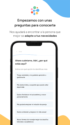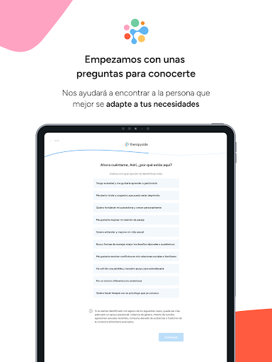 Comienza a cuidar de tu bienestar emocional y conecta con un psicólogo colegiado por videollamada desde donde y cuando quieras En Therapyside encontrarás psicólogos especializados en la gran mayoría de áreas (autoestima, ansiedad, depresión, sexualidad, terapia de pareja y coaching). Inicia tu proceso de mejora Sabemos que dar el primer paso no es fácil. Por eso, ofrecemos una primera sesión de 50 minutos sin coste, en la que podrás conocer a tu psicólogo, compartir tu situación, los objetivos que te gustaría alcanzar y resolver todas las dudas que te puedan surgir. Terapia online de calidad Para nosotros es fundamental facilitarte el acceso a una terapia de calidad. Por eso, todos los psicólogos en nuestra app están colegiados y tienen experiencia. Además, todas las comunicaciones dentro de la app, como el chat y las videollamadas, están encriptadas. Cuida de tu salud mental con un psicólogo online ¿No tienes del todo claro cómo te puede ayudar un psicólogo? Aquí te dejamos algunos ejemplos: Mejorar tu autoestima Aprender a gestionar el estrés Manejar la ansiedad Desarrollar habilidades sociales Mejorar tu relación a través de terapia de pareja Crecer personal y profesionalmente Aumentar la satisfacción con tu vida sexual Conectar con tus emociones Puedes confiar en nosotros El 92% de nuestros usuarios recomiendan Therapyside a familiares y amigos Sesiones por videollamada de 50 minutos Todos los psicólogos en Therapyside están colegiados Llevamos desde el 2016 dedicándonos a la psicologia online Te ayudamos a encontrar el mejor psicologo para ti, que te ayude a lidiar con la depresion, gestionar la ansiedad, el estrés y la baja autoestima.