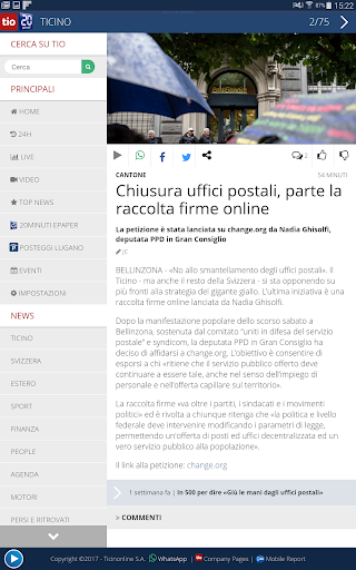 Tutte le notizie di tio alla portata di un tap! Vi presentiamo la nuova app, in una veste completamente rinnovata e progettata per l\utilizzo su smartphone e tablet Android! Gli articoli di tio con tanto di immagini e video, segnalazioni, risultati sportivi e l\epaper di 20minuti tutti racchiusi in un\unica applicazione. Policy dei Permessi: Il permesso che chiede di leggere lo stato del telefono viene usato dall\applicazione per gestire le notifiche. Il registra audio serve per la nuova funzionalità di lettura dell\articolo. Nonostante noi utilizziamo solo la riproduzione il sistema che utilizziamo richiede anche i permessi di registrazione. I permessi di accedere alla memoria del dispositivo sono richiesti sia per la riproduzione degli articoli che per l\invio delle segnalazioni. I vari permessi riguardanti la localizzazione vengono usati in diverse sezioni dell\app. Il permesso della rubrica è per l\integrazione con Whatsapp, la rubrica è necessaria per aprire una chat con Ticinonline.